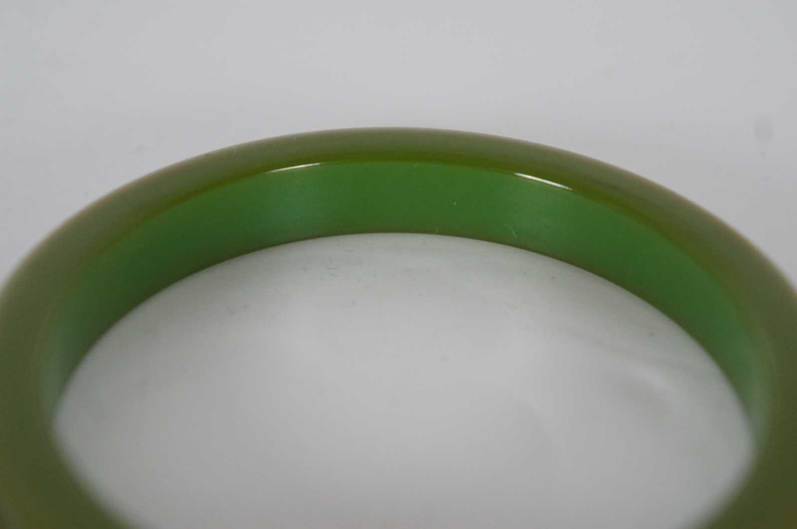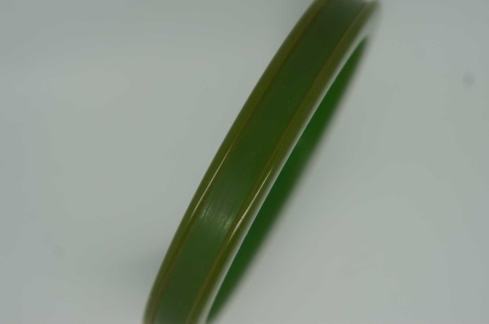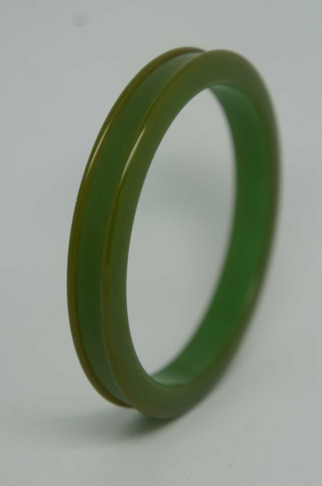 Early to mid 20th century olive green Bakelite bangle bracelet with raised edge.