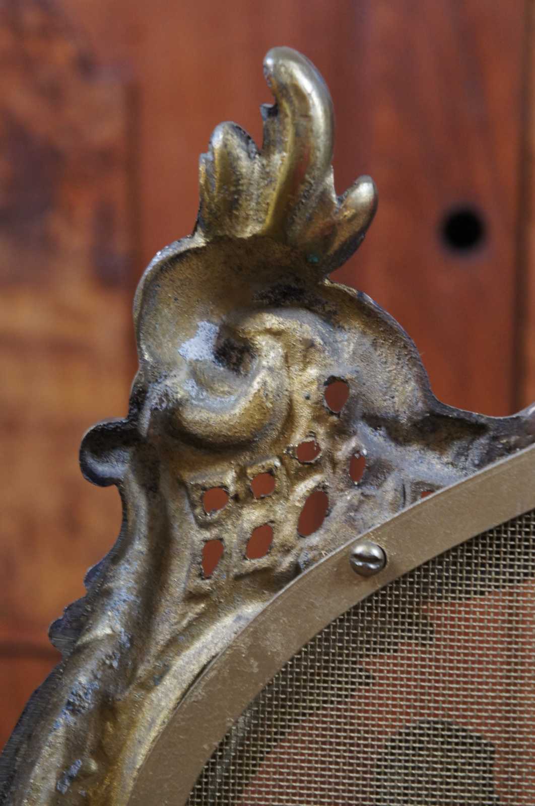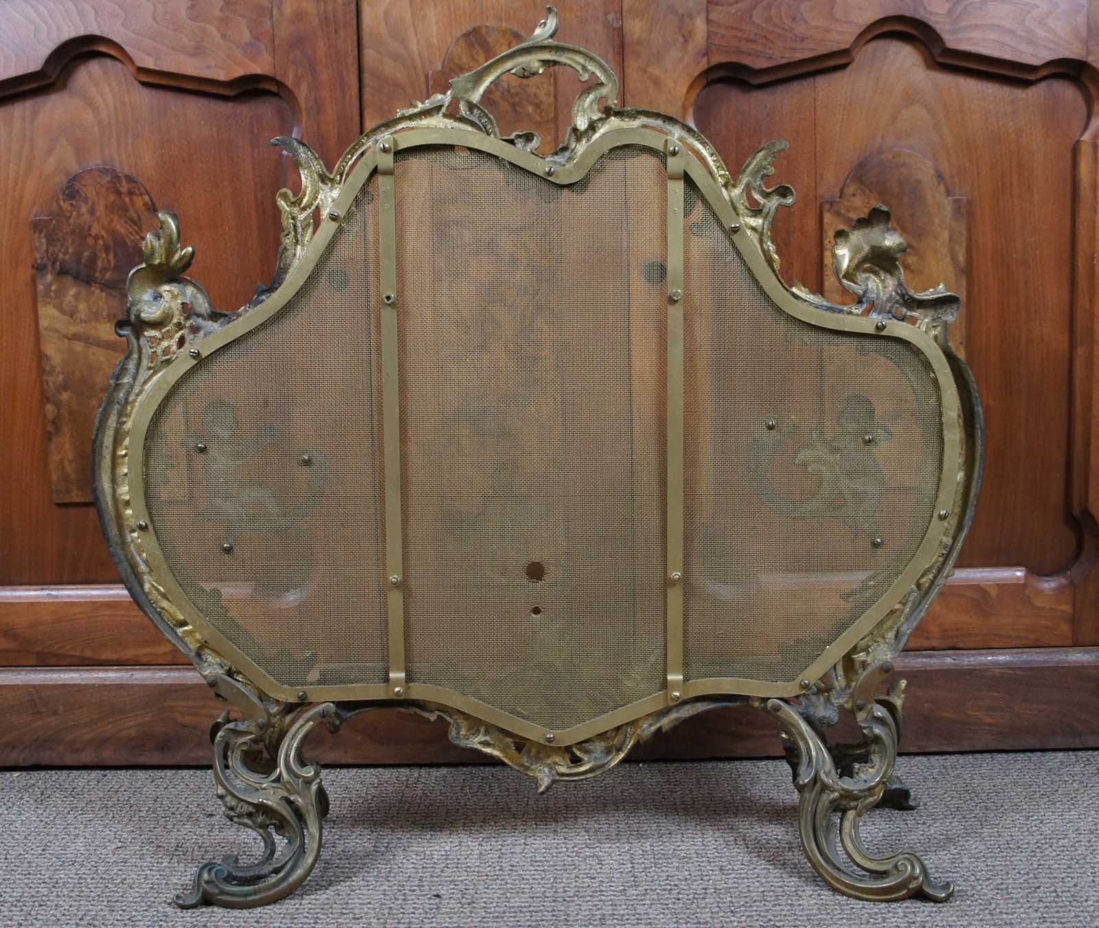 19th Century French rococo or baroque style bronze fire screen accented with cherubs and fender corners.