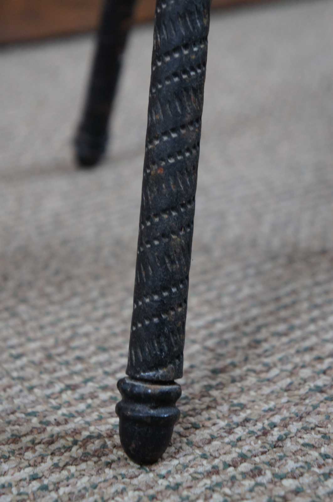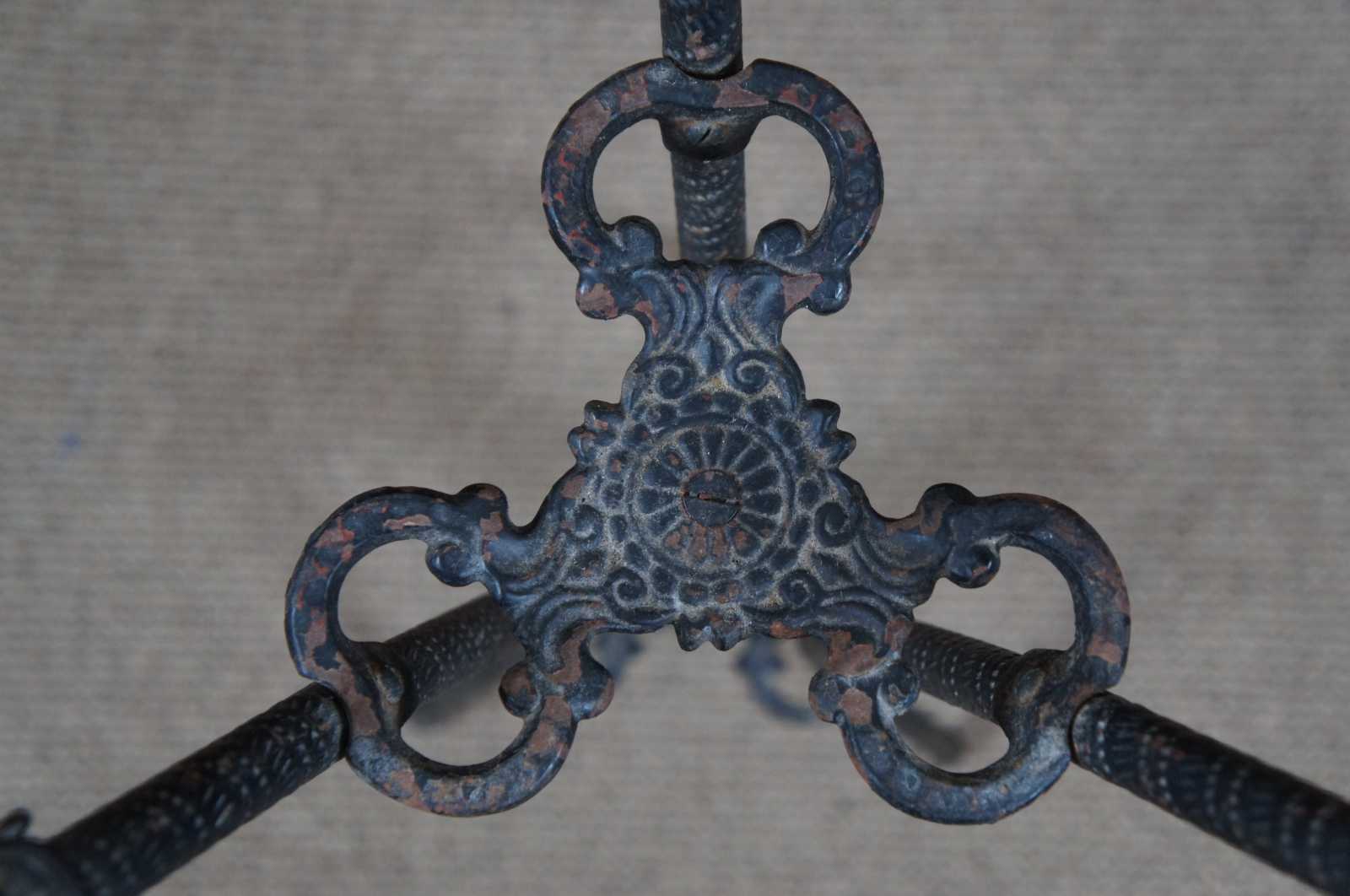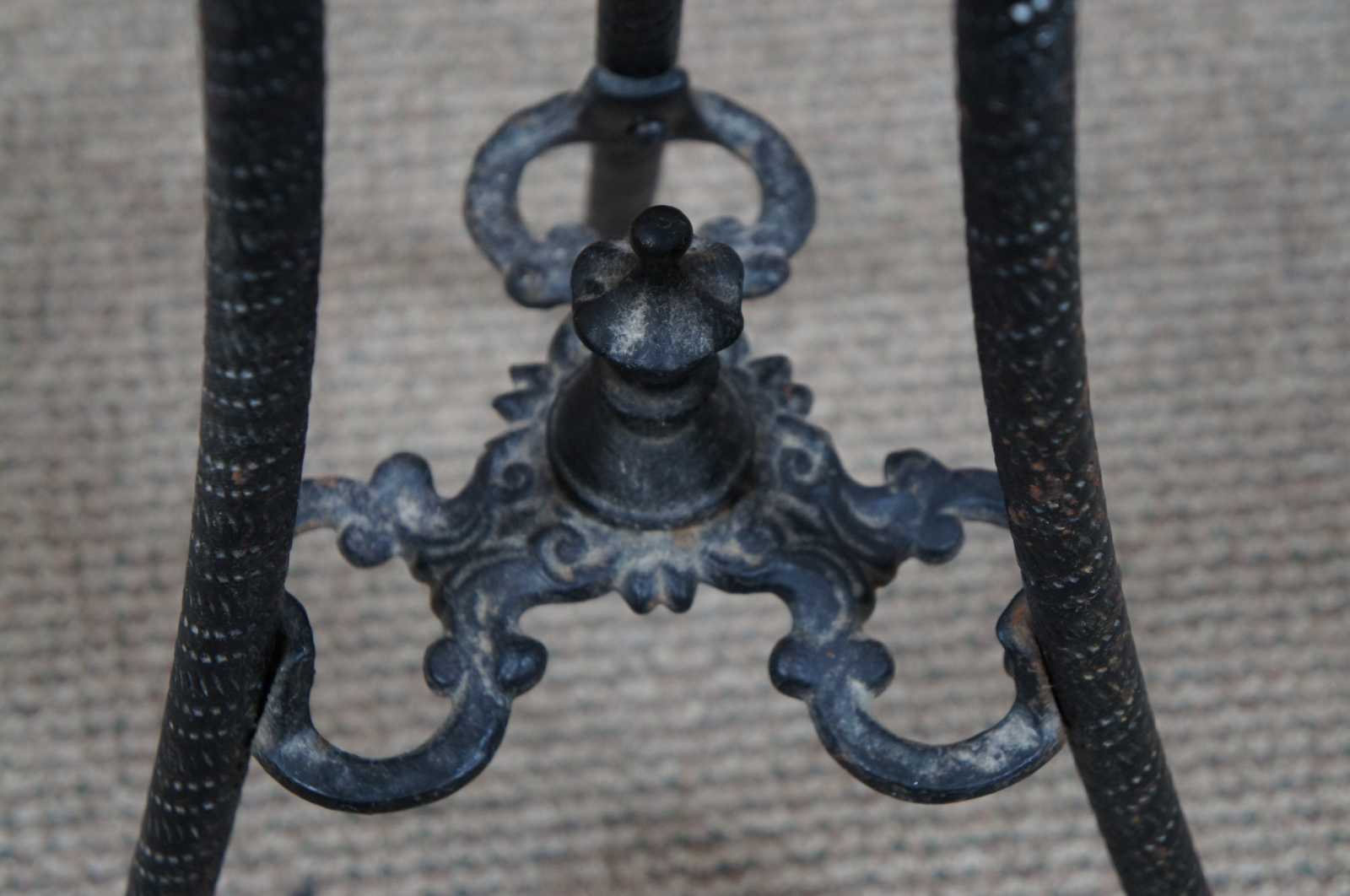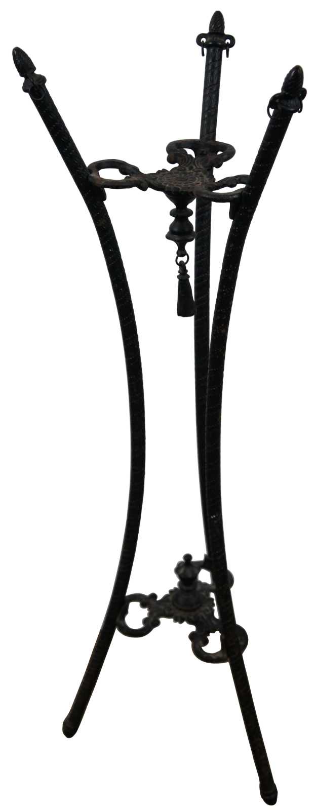 Antique victorian plant stand featuring ornate styling with three legs and hourglass form.