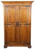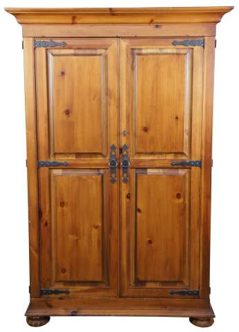Vintage Jim Peed for Romweber furniture TV entertainment cabinet or armoire. Made of pine featuring iron hardware with paneled doors, round scalloped feet and double hinged doors.
