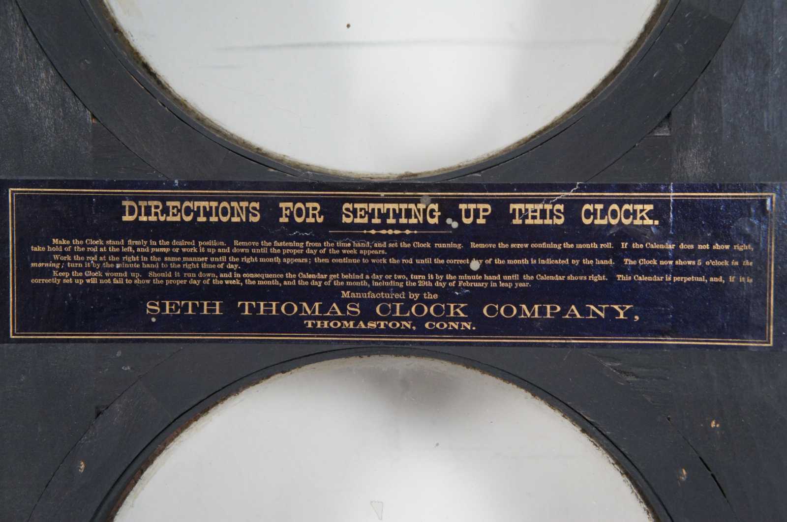 An exceptional and rare federal style case for a Seth Thomas calendar clock model No 2 or No 3. Manufactured in the last quarter of the 19th century.