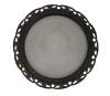 French Provincial / country style flush mount ceiling light medallion in an antique copper finish with a frosted glass shade decorated with flowers and swirls.