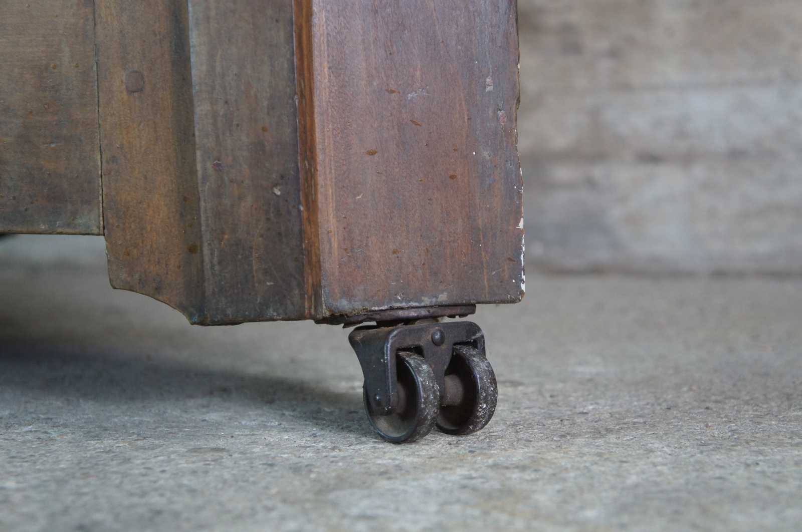 Good antique condition, wear and distressing commensurate with age and use, edge / finish wear, paint loss, one small old crack in corner of panel.