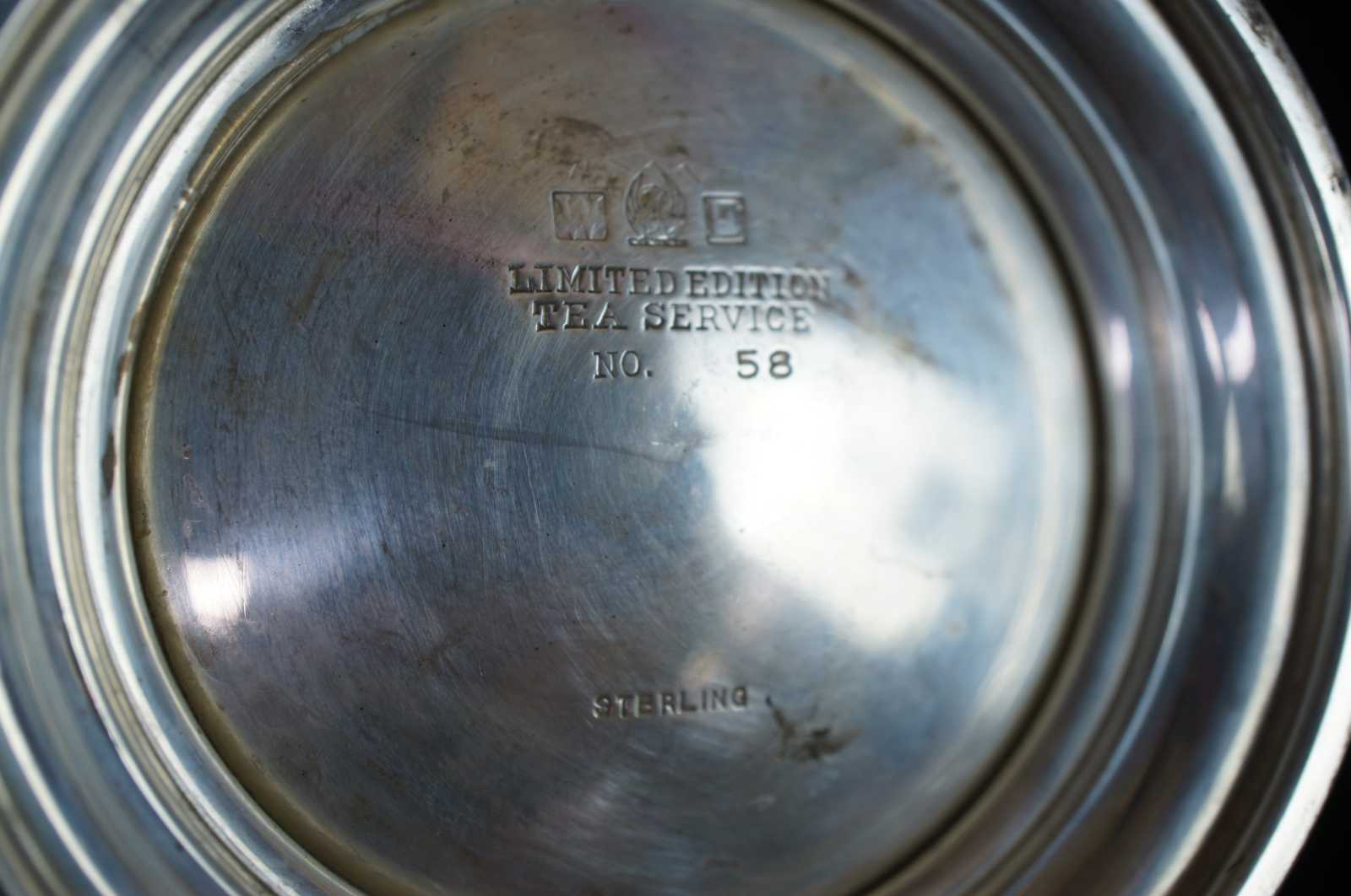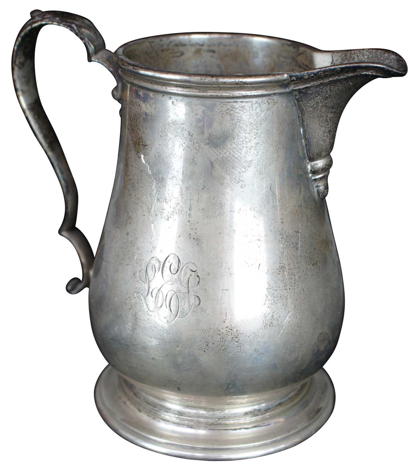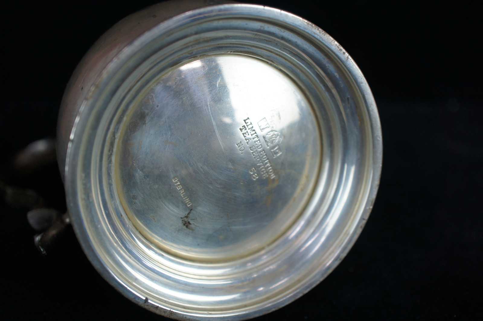 Antique sterling silver limited edition tea service creamer pitcher. Marked with W , a winged eagle , and E , No. 58.
