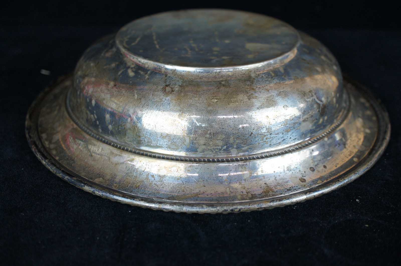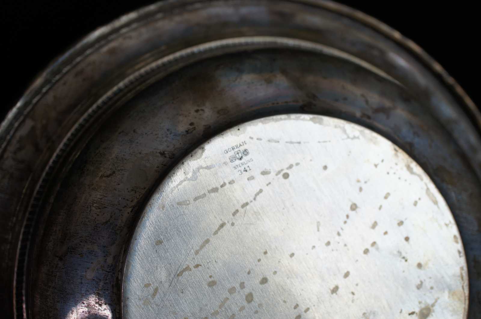 Antique Gorham sterling silver bowl #341. A large bowl featuring a beaded ring and rope twist rim design.
