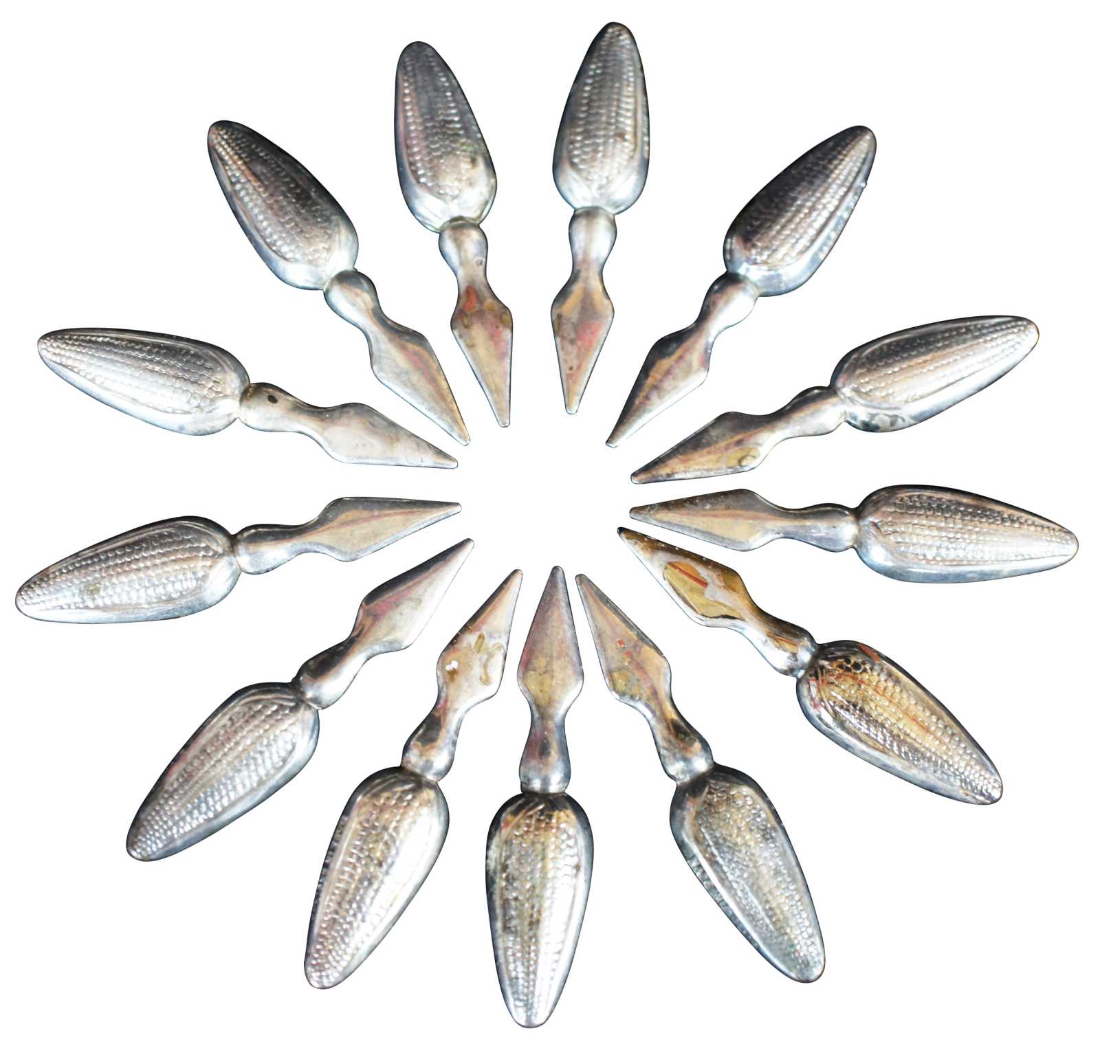 Lot of 13 vintage corn on the cob handles or holders, marked England.