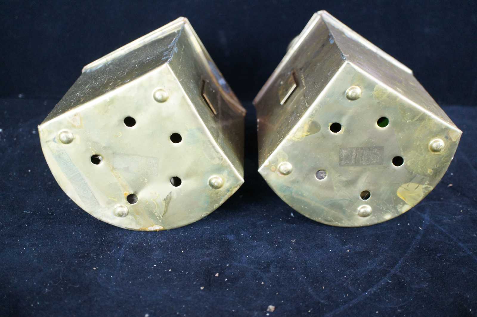 Pair of two vintage port and starboard ship oil lanters.