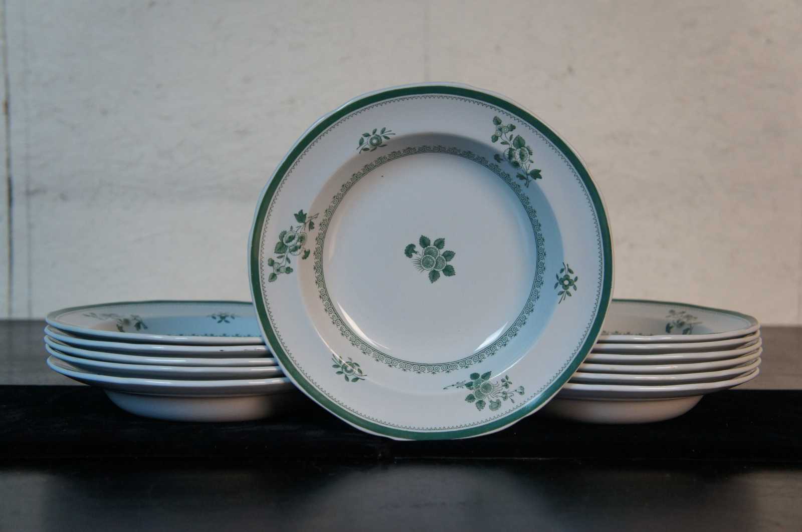 Antique 26 Pc Green Copeland Spode Gloucester Fine Stone China Dinnerware Green