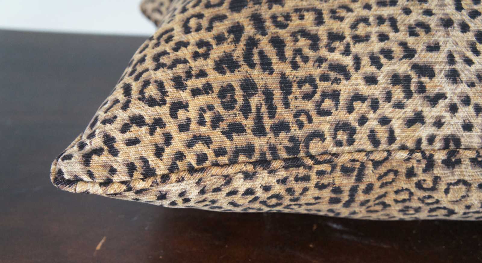 Ballard Designs Perfect Accent Cover with Insert, down filled lumbar throw pillow with leopard print pattern.