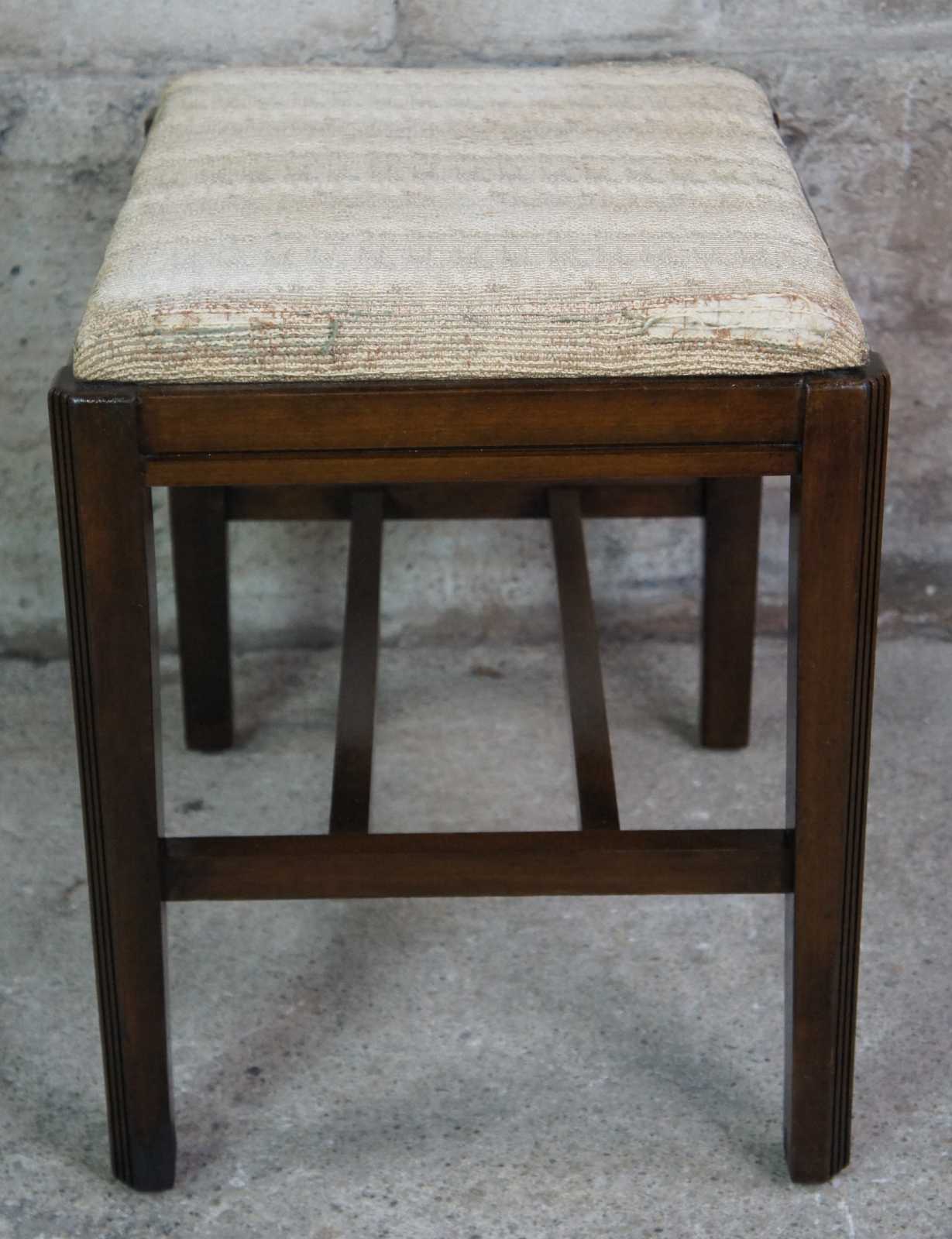 Art Deco era walnut foot rest or bench featuring rectangular form with fluted accents and padded seat.
