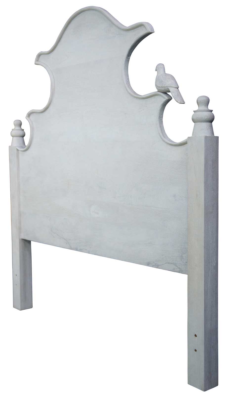 The graceful curves and dramatic scale of our wood Claudette Headboard are accentuated with a rolled edge and a carved bird detail you can pivot or remove for versatility. To achieve the warm, weathered look, artisans sandblast the solid hardwood planks, and then drag the surface with a brush to add the finish color.