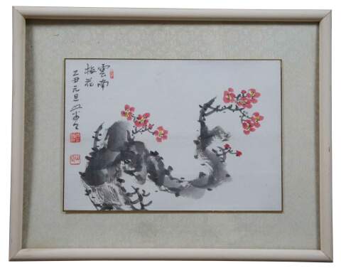 Vintage Korean watercolor painting showing flowering willow flowers on branches.