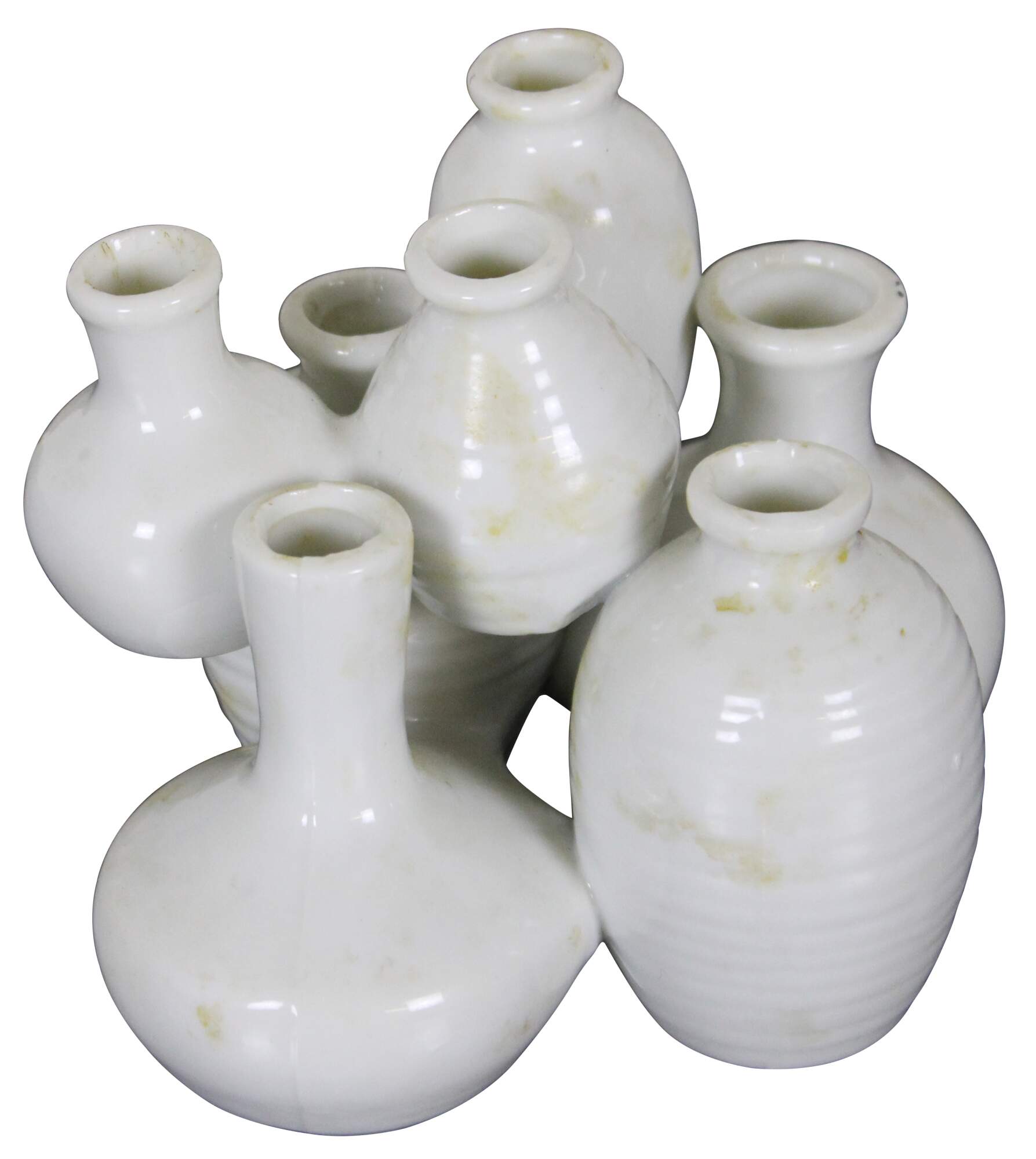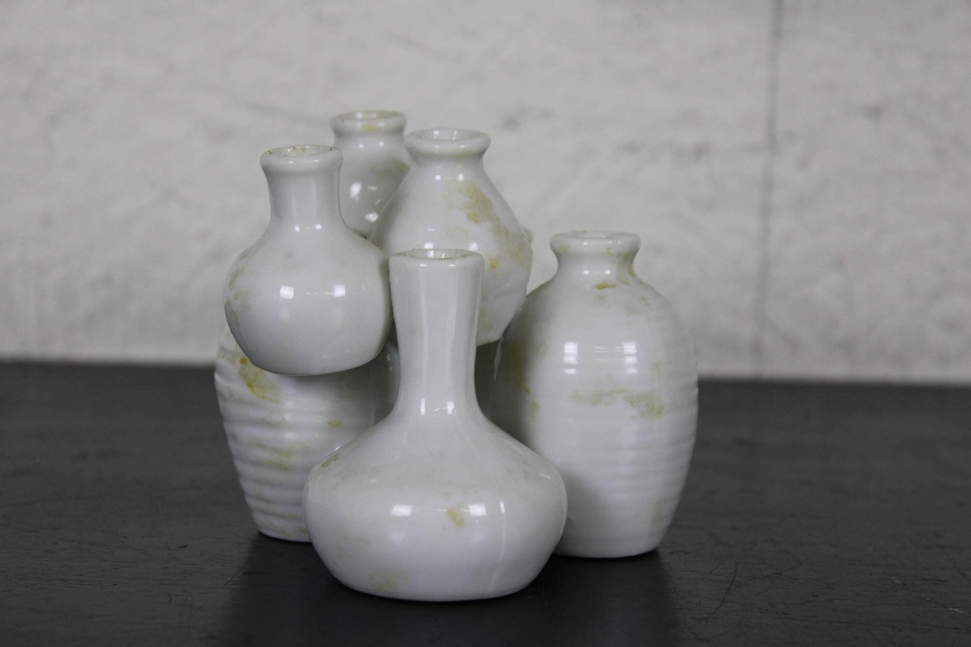 Vintage 1960’s white porcelain bud vase shaped to resemble a cluster of seven stacked amphoras. Excellent for decorative flowers or propagation of plant cuttings.