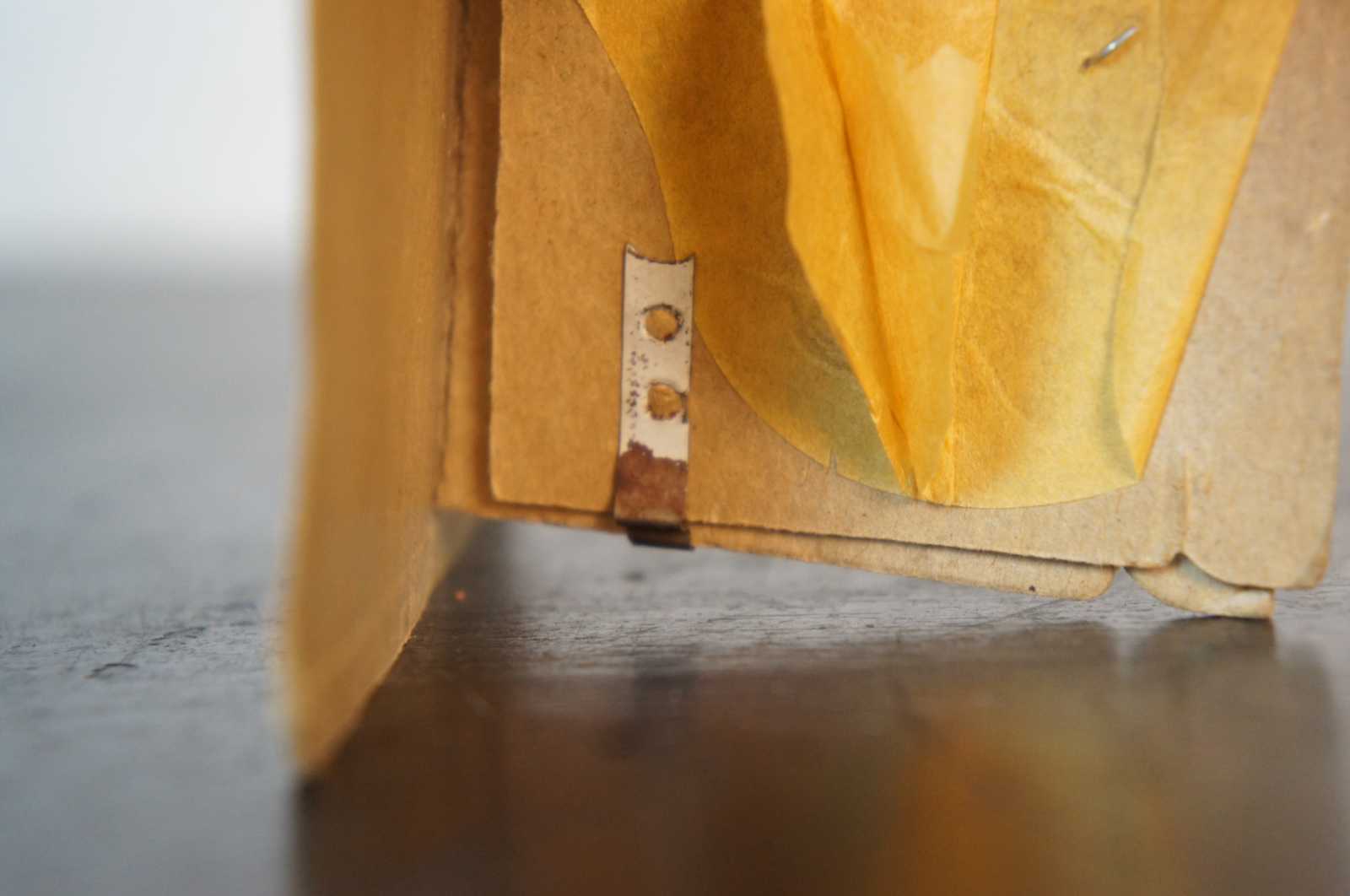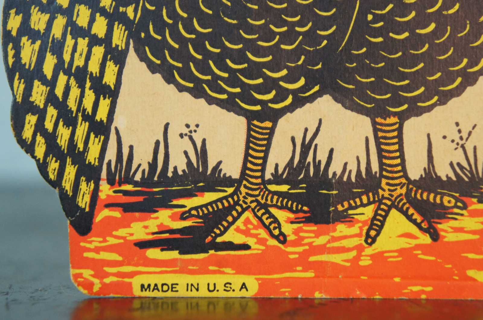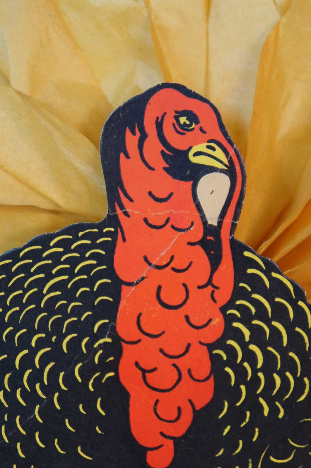 Antique dime store paper turkey table topper with tissue feathers.