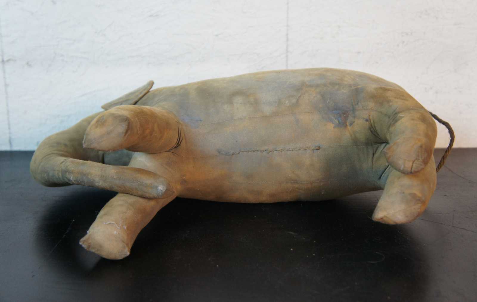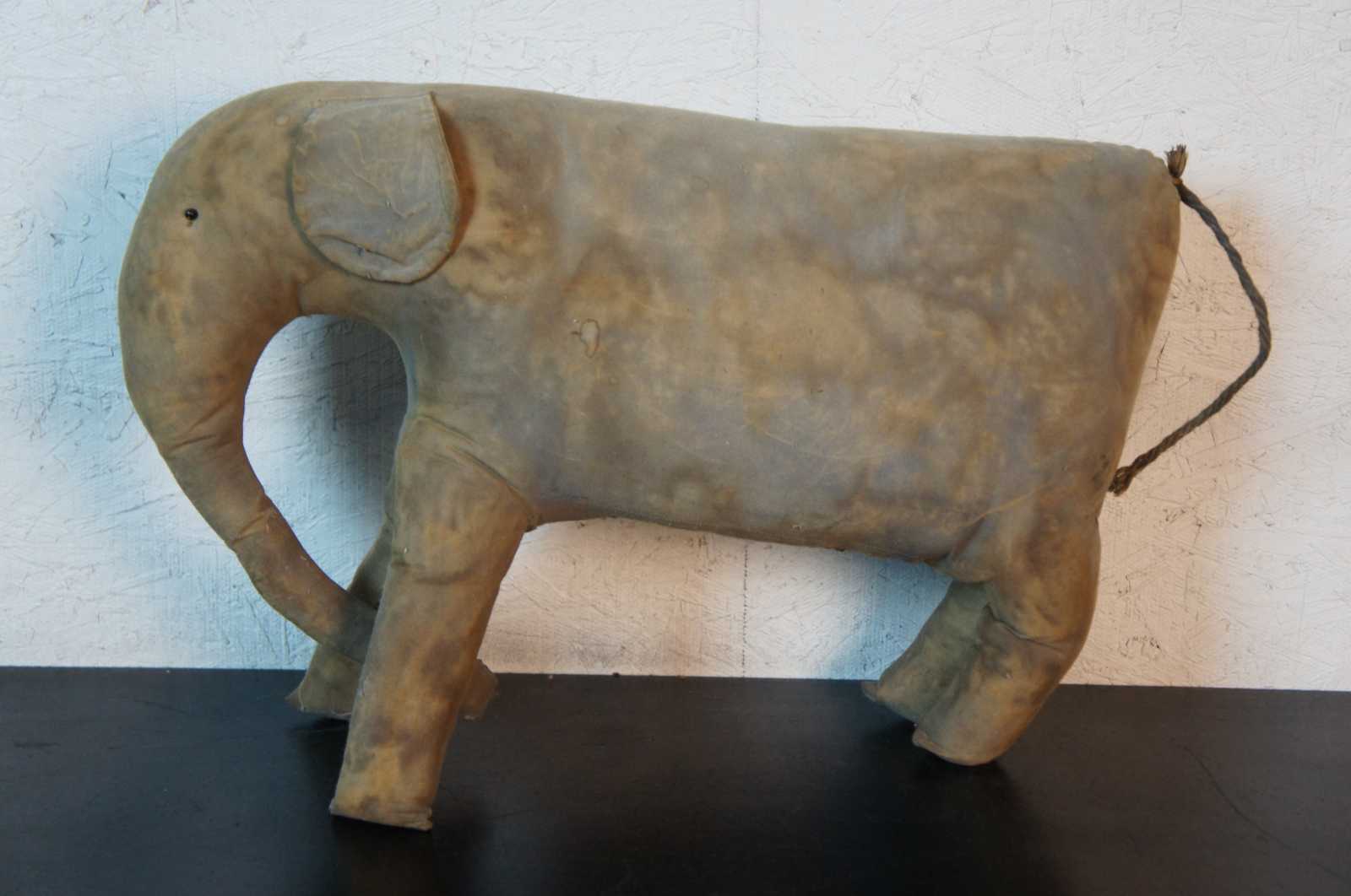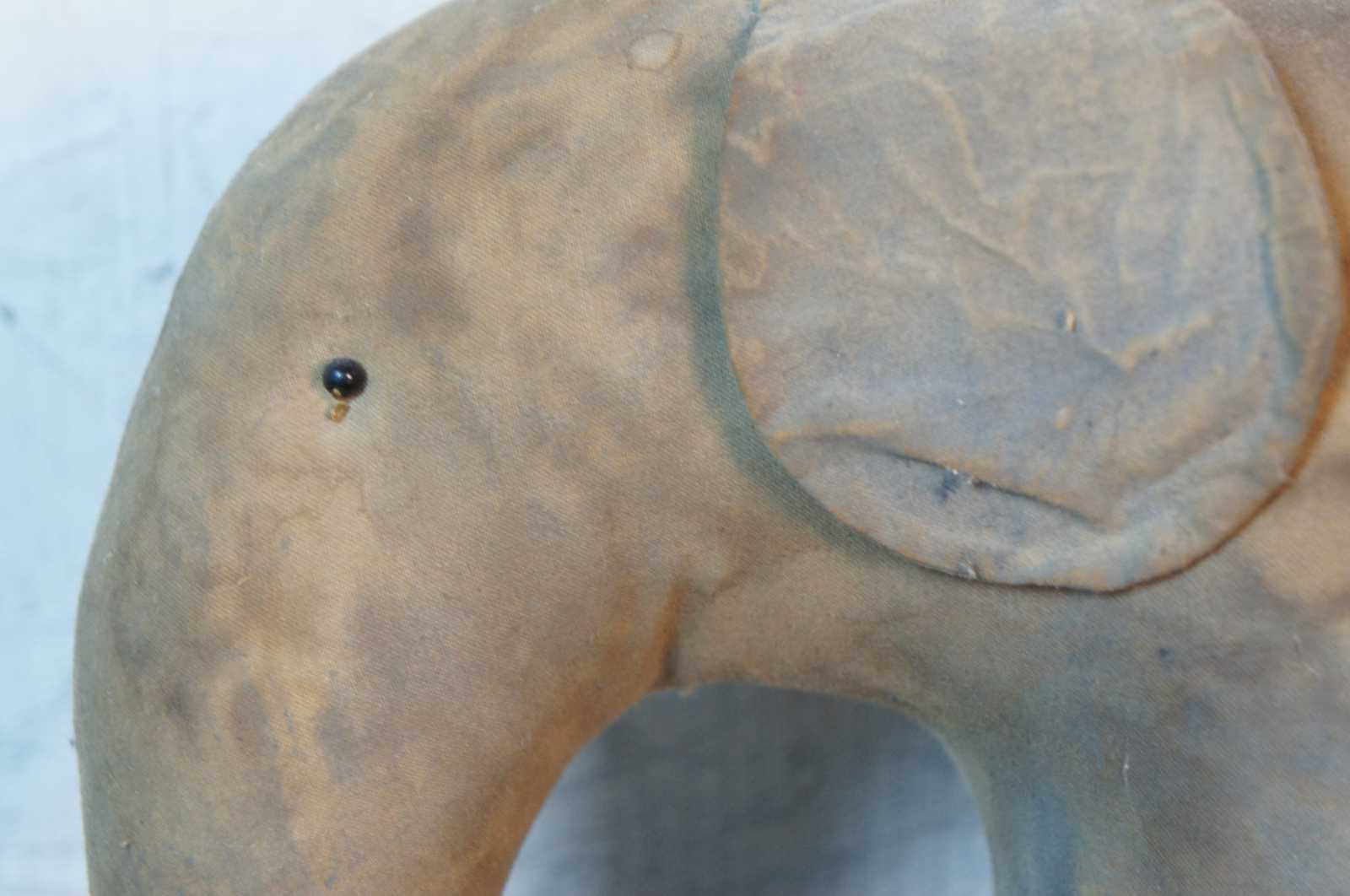 Antique primitive folk art hand made stuffed elephant toy with jute tail.