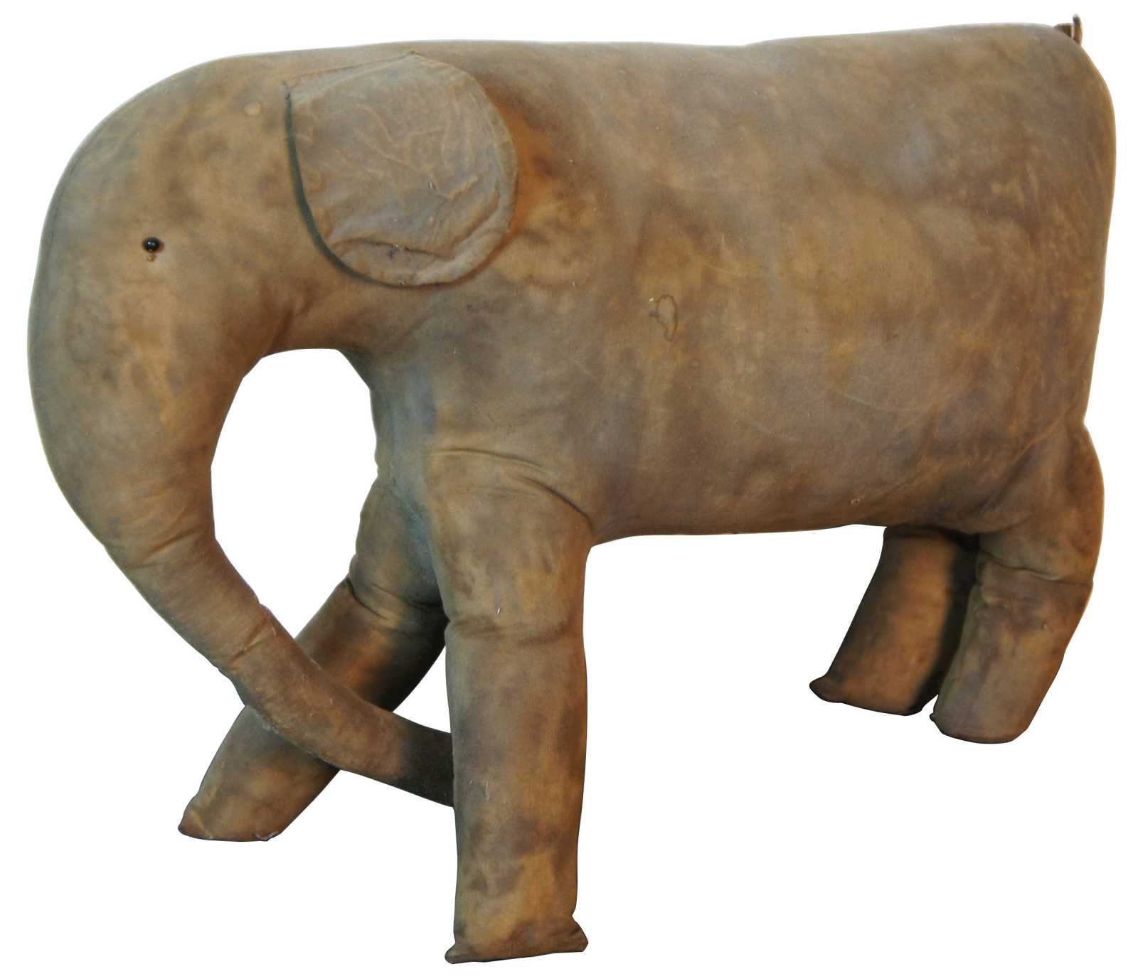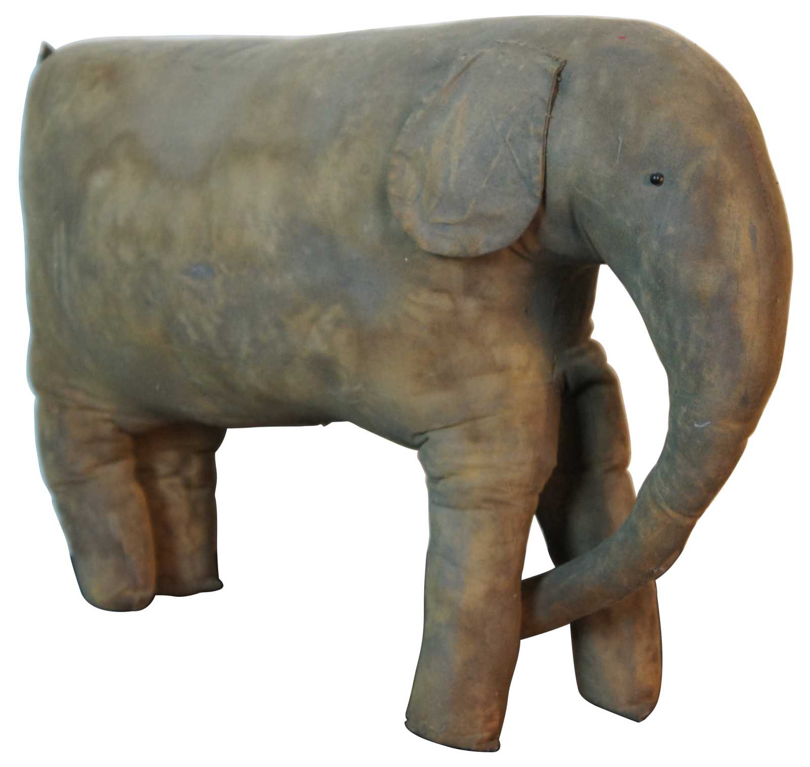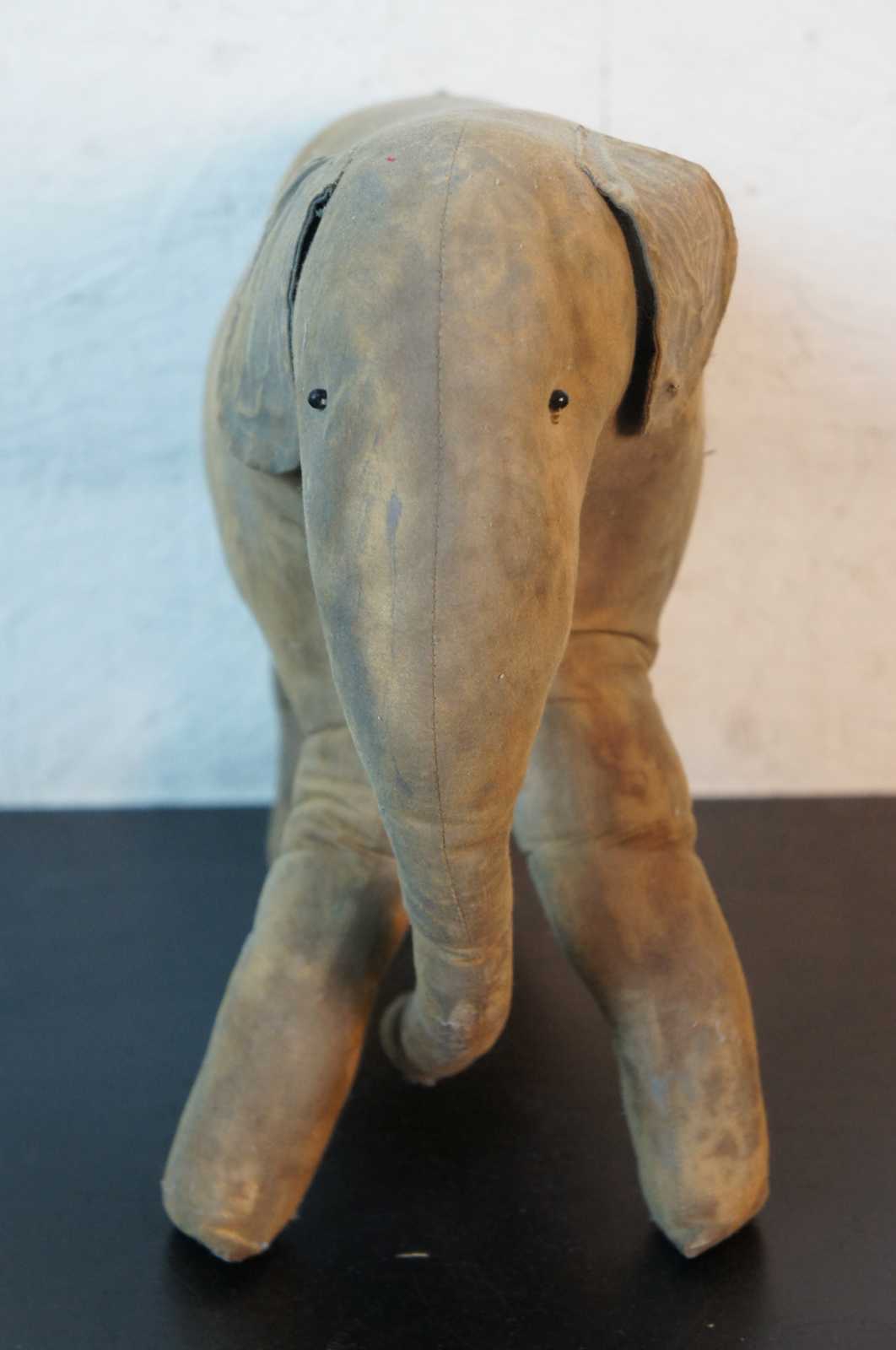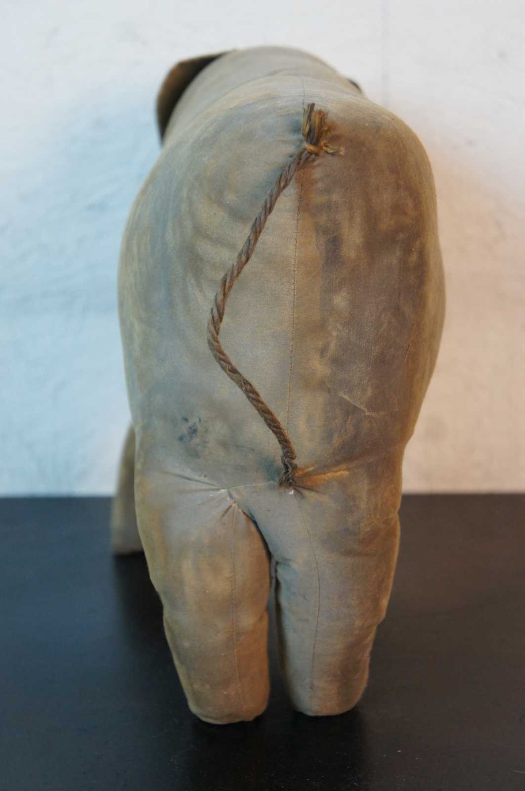 Antique primitive folk art hand made stuffed elephant toy with jute tail.