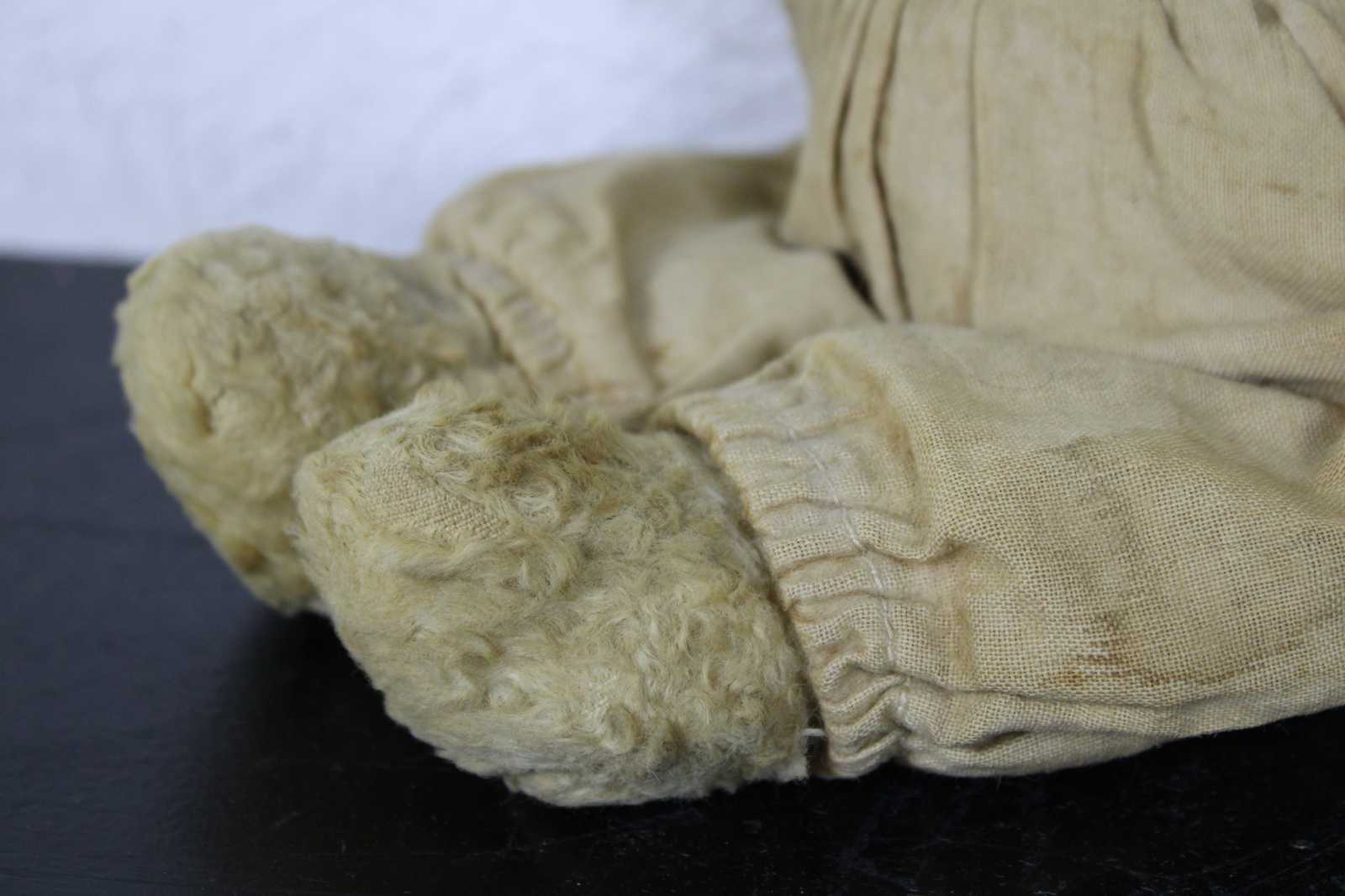 Antique Early 20th Century Mohair Jointed Teddy Bear in Overalls Bells in Ears