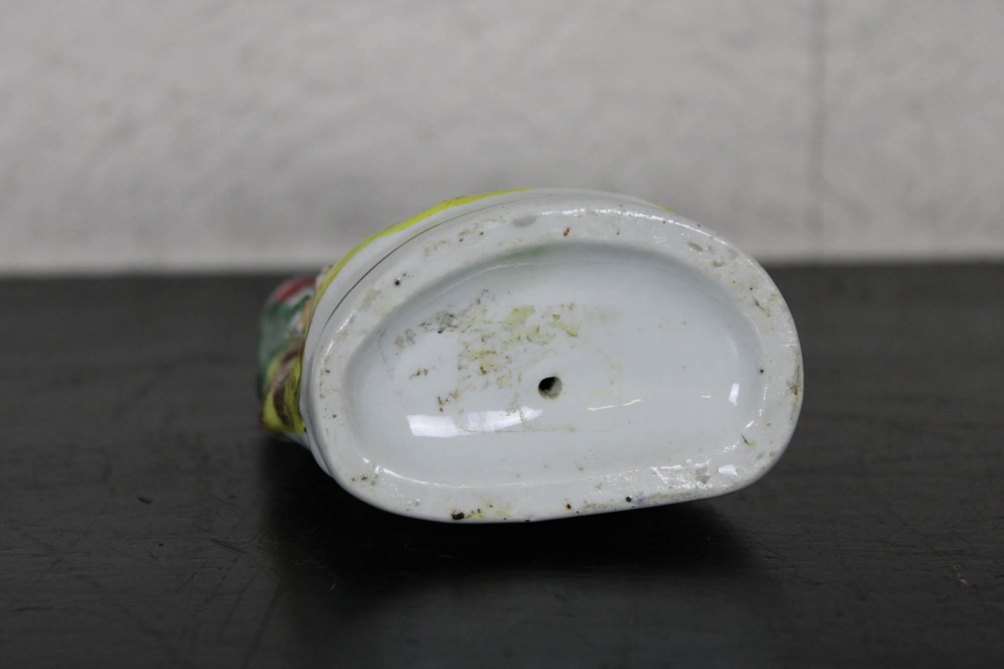 Antique 19th century Staffordshire porcelain figure in the shape of a boy standing next to a rabbit hutch and grasping a pheasant.