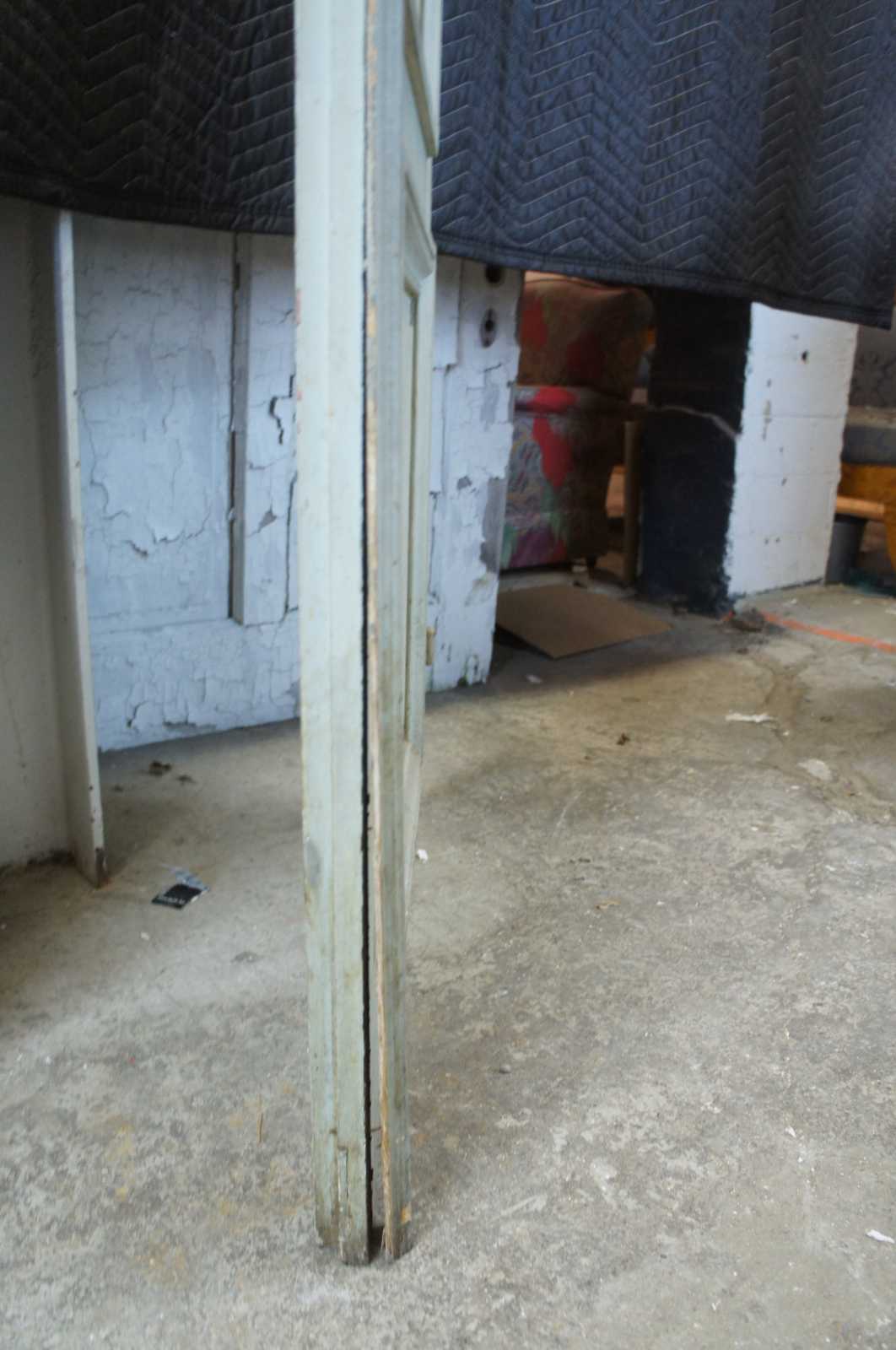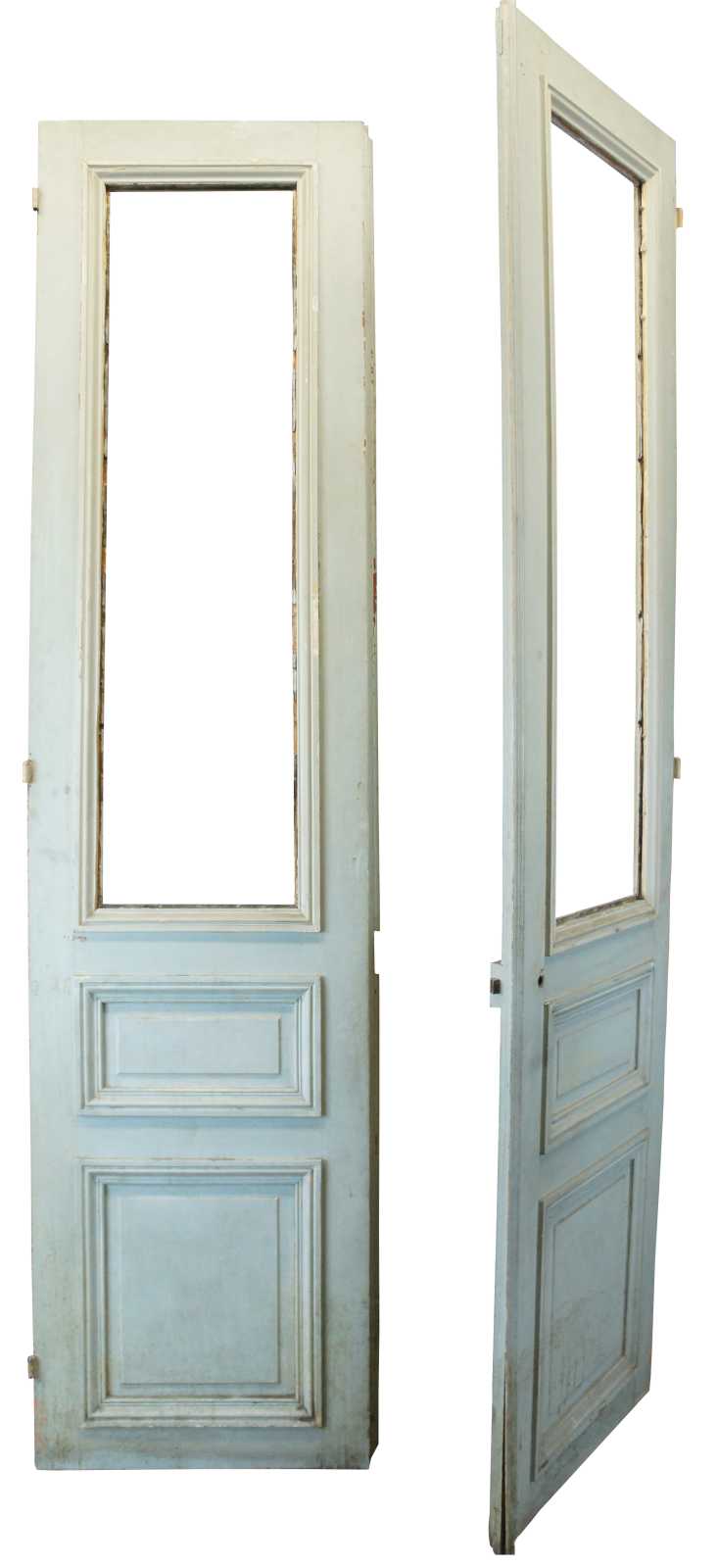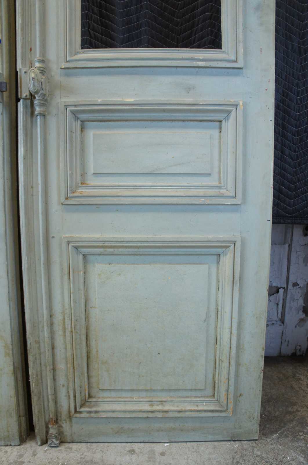 Monumental late Victorian French double doors featuring paneling on both sides and an iron cremone bolt lock hardware.