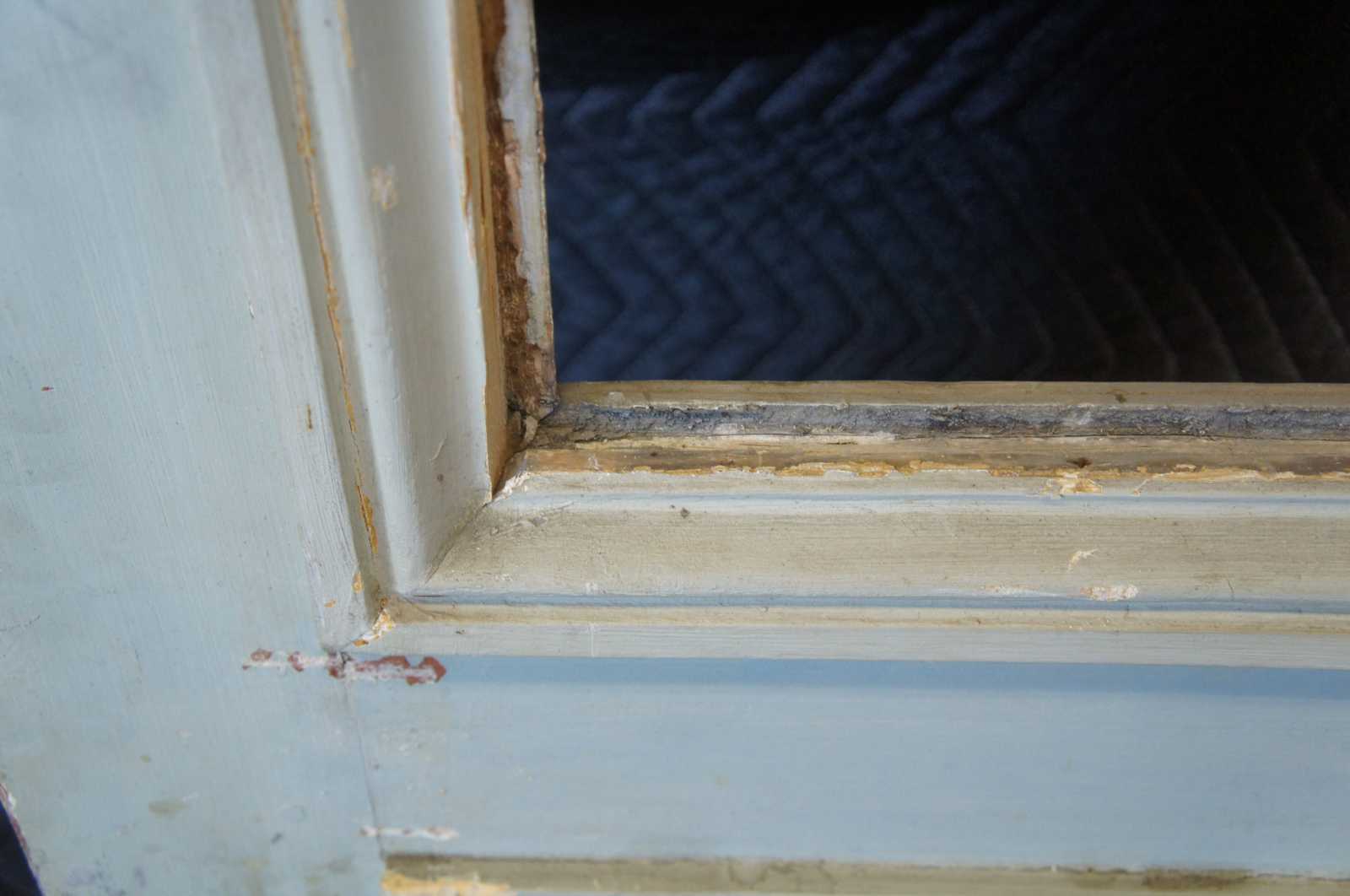 Fair condition, wear and distressing, paint loss, splitting, no windows, good structurally.