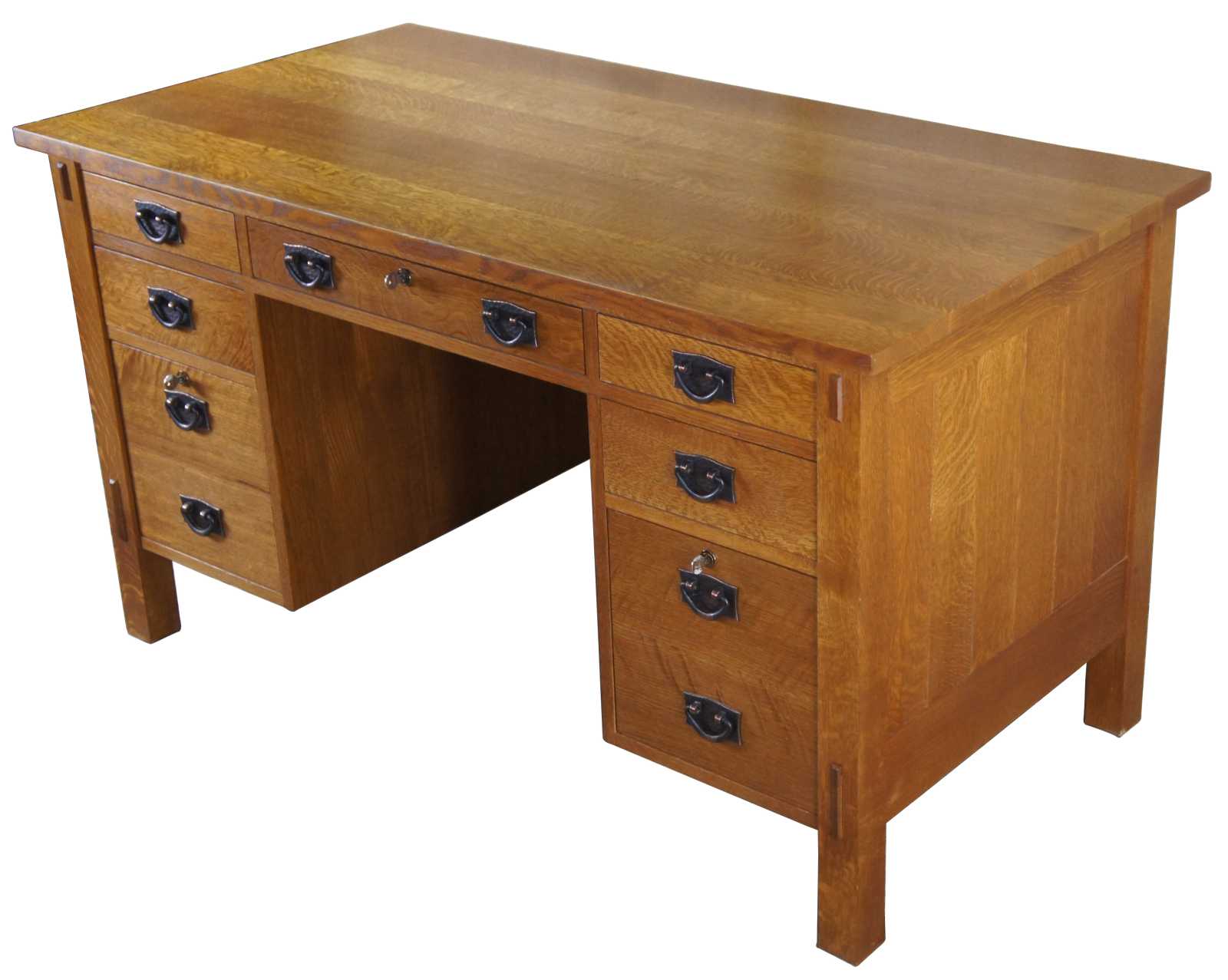 An Arts & Crafts Mission School Oak ‘Executive’ design Desk by Stickley Furniture made in 2006. A classic Mission School design and build to a very high standard. All the style of an Arts & Crafts desk, with practical and useable storage.