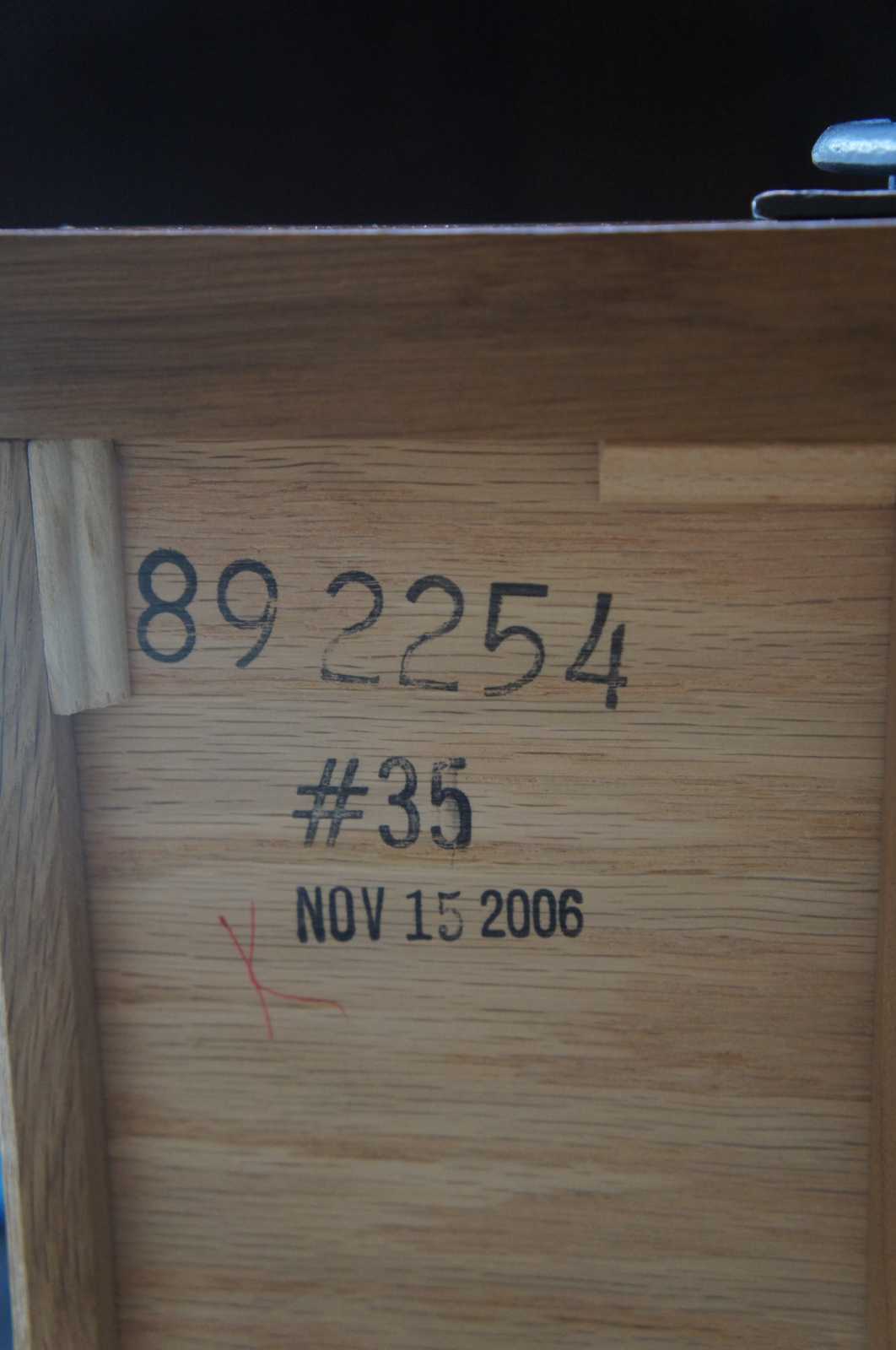 Stickley oval shopmark brand and metal ""Mission Medallion"" (Adopted in 1985 and 1989 respectively)