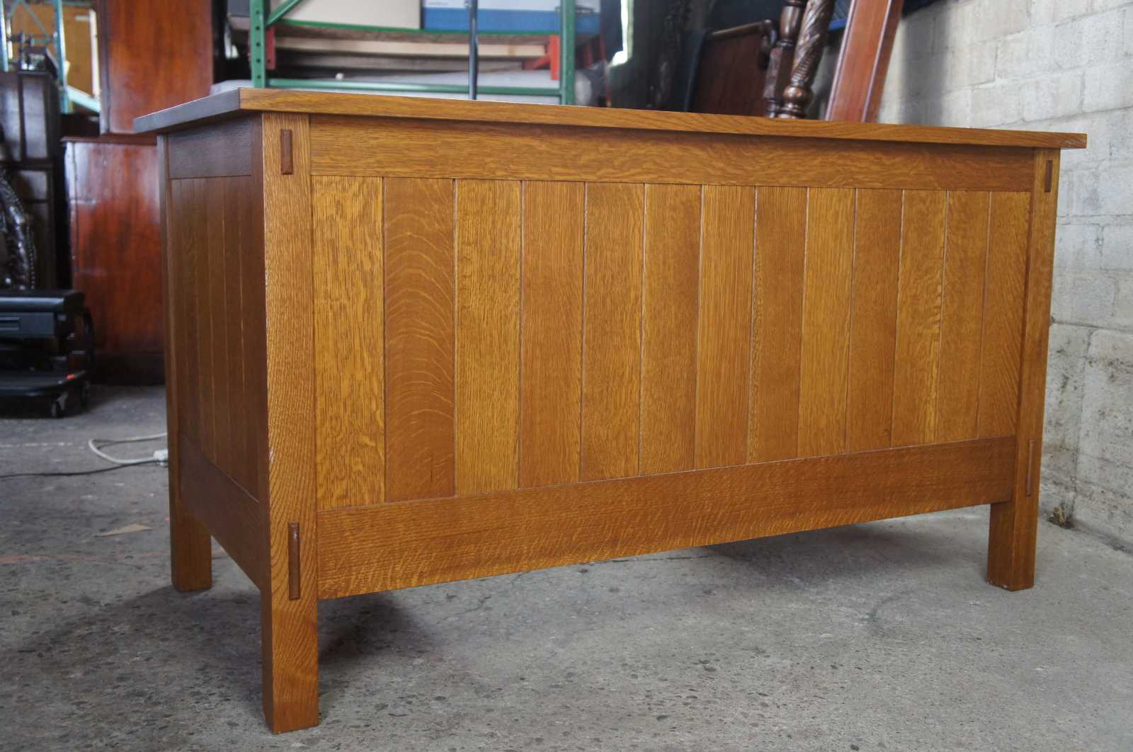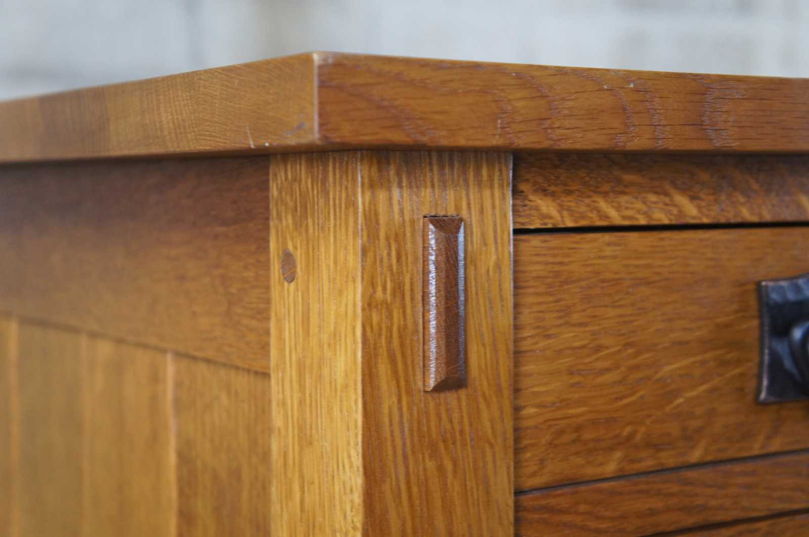 Arts and Crafts Mission School furniture is designed with clean simple elegant lines and panels that accentuate the grain of the wood (often quartersawn oak) and show off the craftsman involved in making them. Founded in America when people were looking for alternatives the excesses of Victorian times and the influx of mass-produced furniture from the Industrial Revolution. Gustav Stickley, L. & J.G. Stickley (Gustav Stickley's brothers) and Charles Limbert are probably the best known makers, with their work all being to a very high standard and is now highly sought after