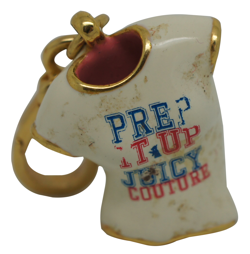 Pair of vintage Juicy Couture charms, a referee’s whistle and a t-shirt charm reading “Prep It Up.”