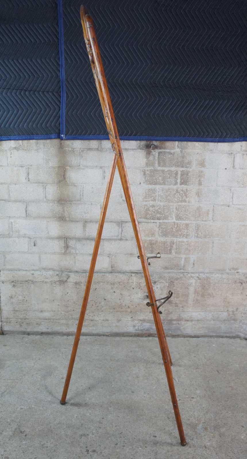 Antique 19th century Victorian ball & stick floor easel featuring arts and crafts styling with bentwood design and brass accents.
