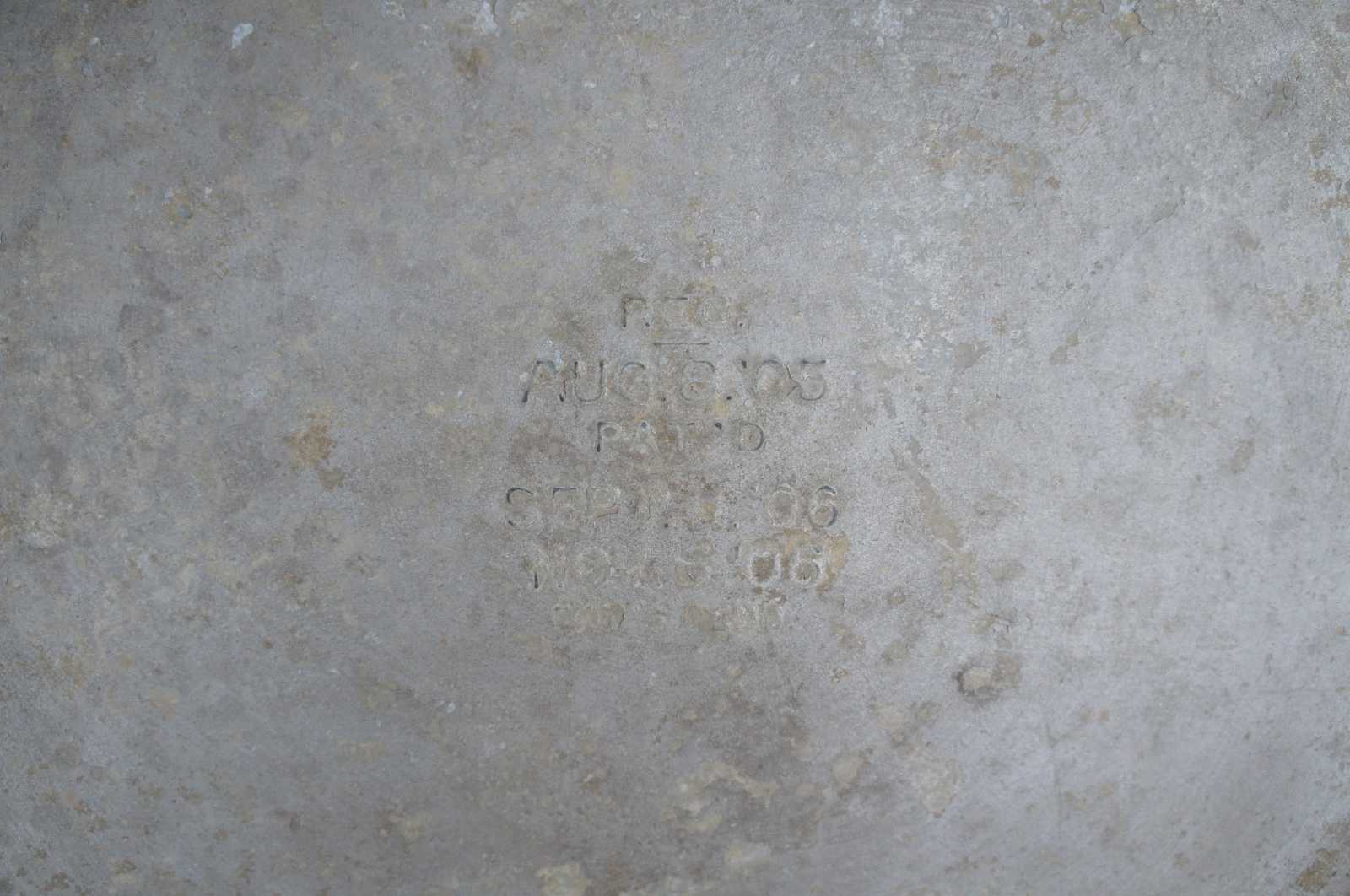 Antique pressed steel ice box refrigerator, with industrial design, hinged lid and door, with three round iron revolving shelves, supported by four shaped legs. Made in Jackson Michigan