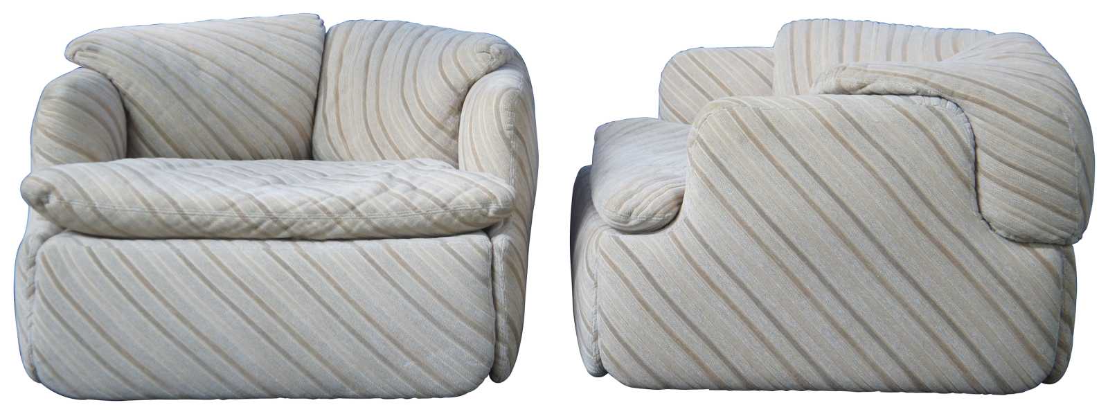 Iconic pair of Fratelli Saporiti Italia Confidential lounge, library or club arm chairs by Alberto Rosselli, circa 1970s. One of the first modular club chairs with a puzzle like cushion connection creating a pivotal look.