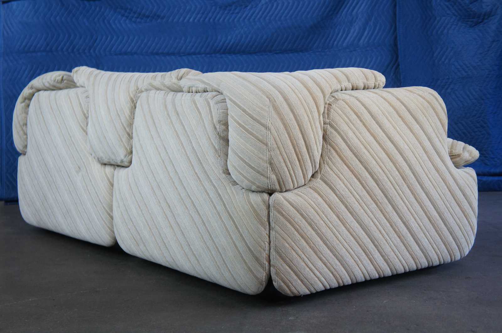 Iconic Fratelli Saporiti Italian Confidental lounge, library or club sofa / couch by Alberto Rosselli, circa 1970s. One of the first modular club chairs with a puzzle like cushion connection creating a pivotal look.