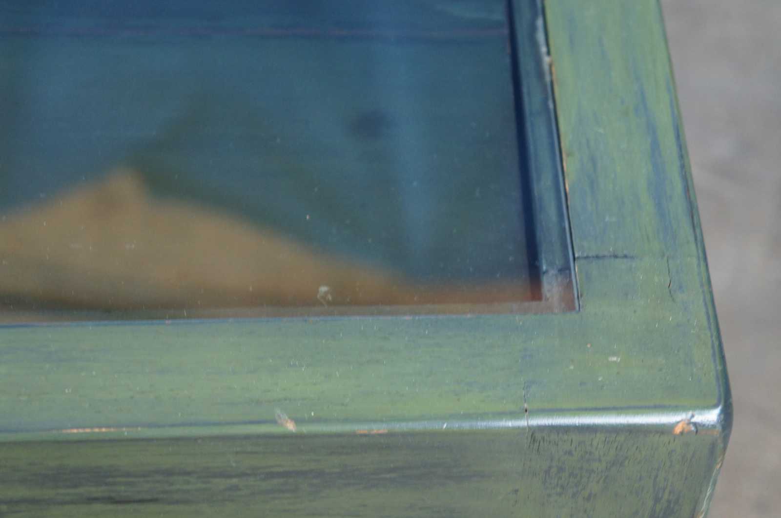 Antique Chinese Chinoiserie panel coffee or cocktail table featuring a glass top and lacquered panel with gilded flowers and bird. The antique panel is mounted within a mid 20th century base. Marked Property of Jay Schottenstein on base.