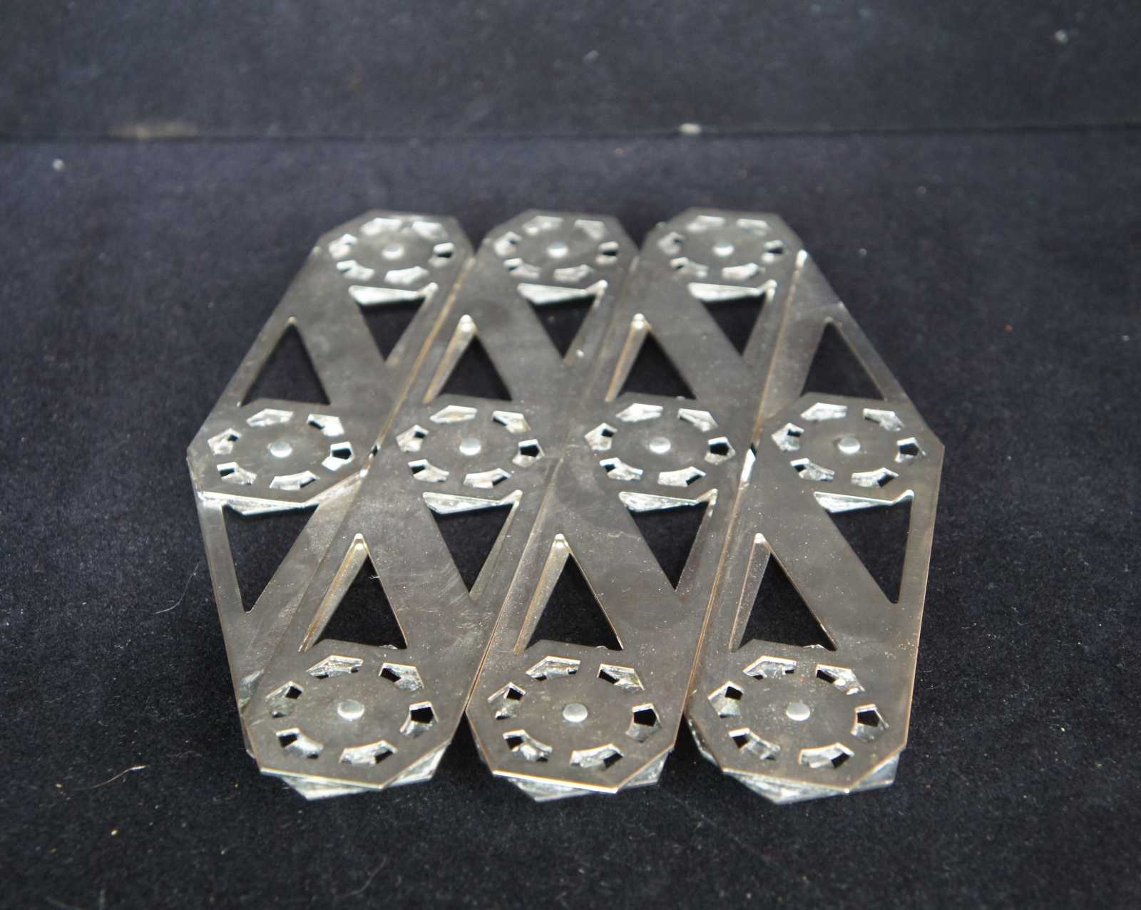 Adjustable silver tone machine age, accordion style trivet.