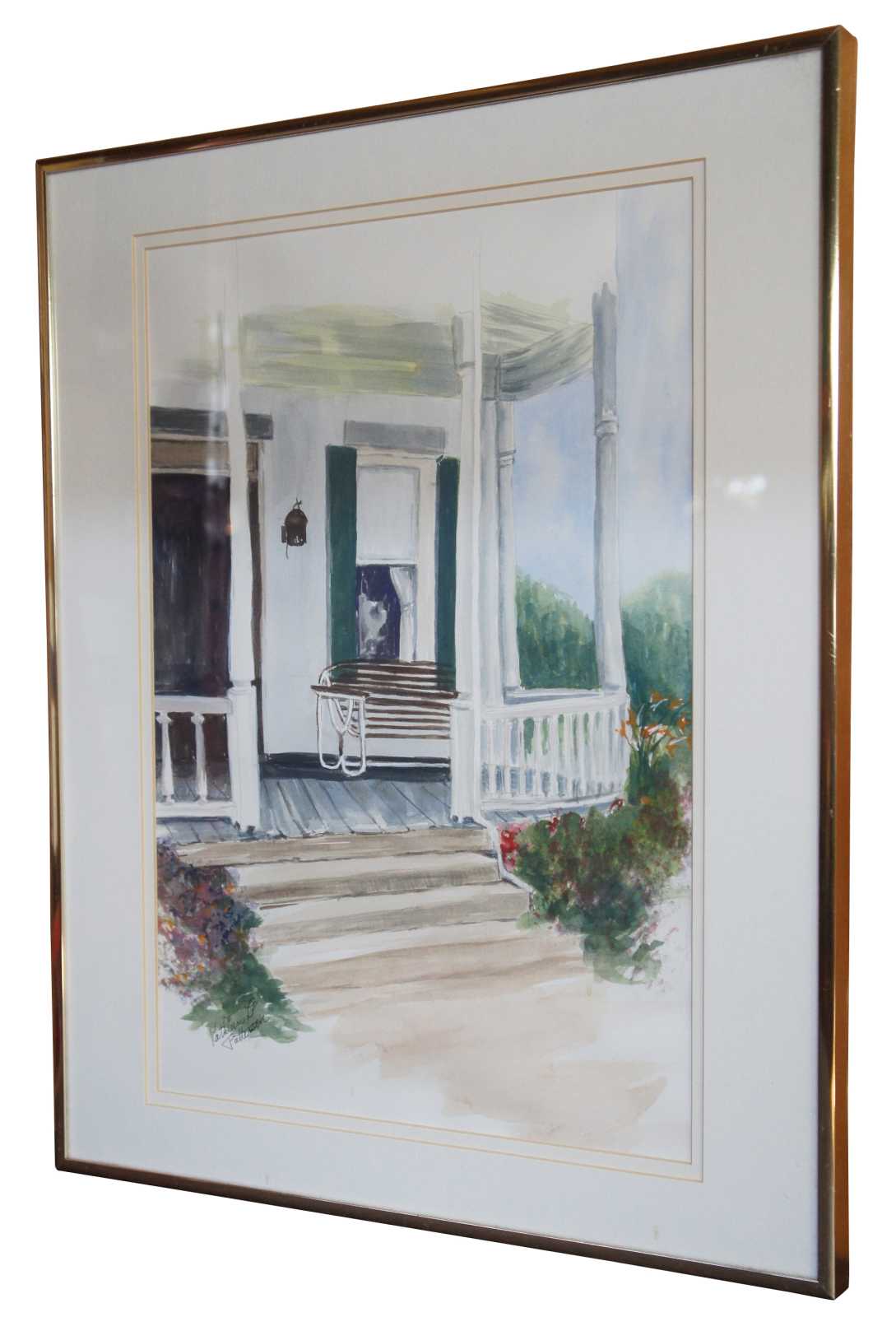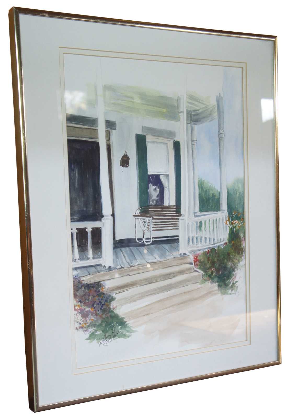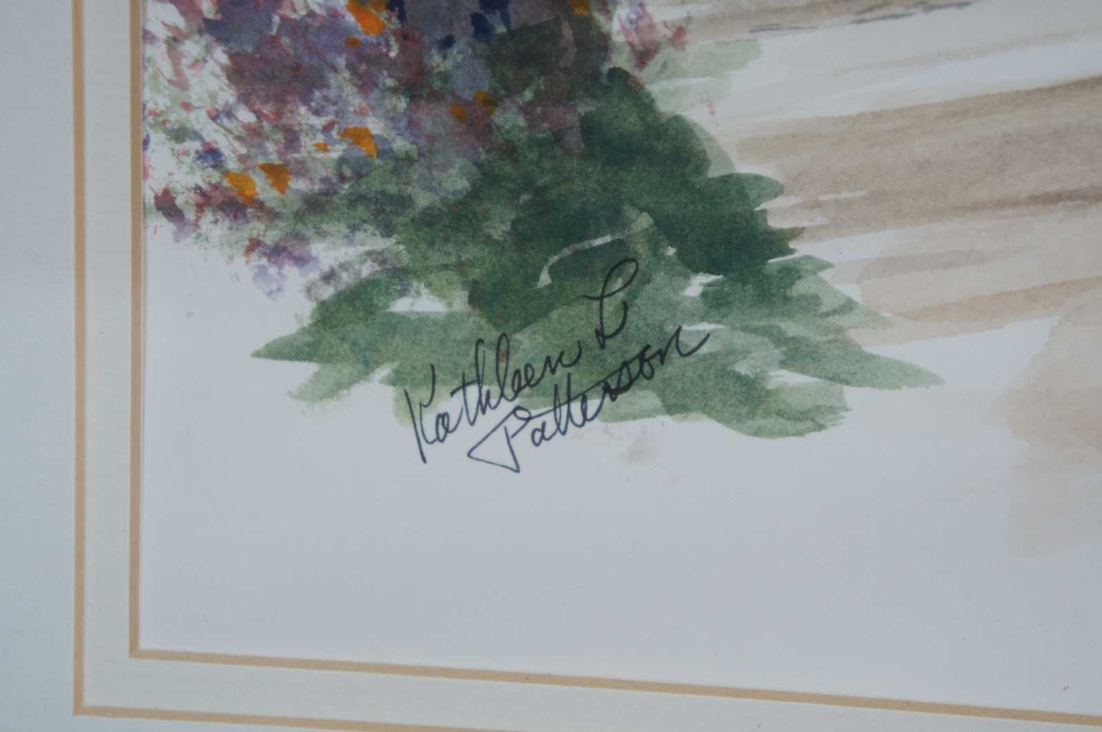 Kathleen L Patterson Watercolor Painting, signed lower left. Features a colonial balcony setting.