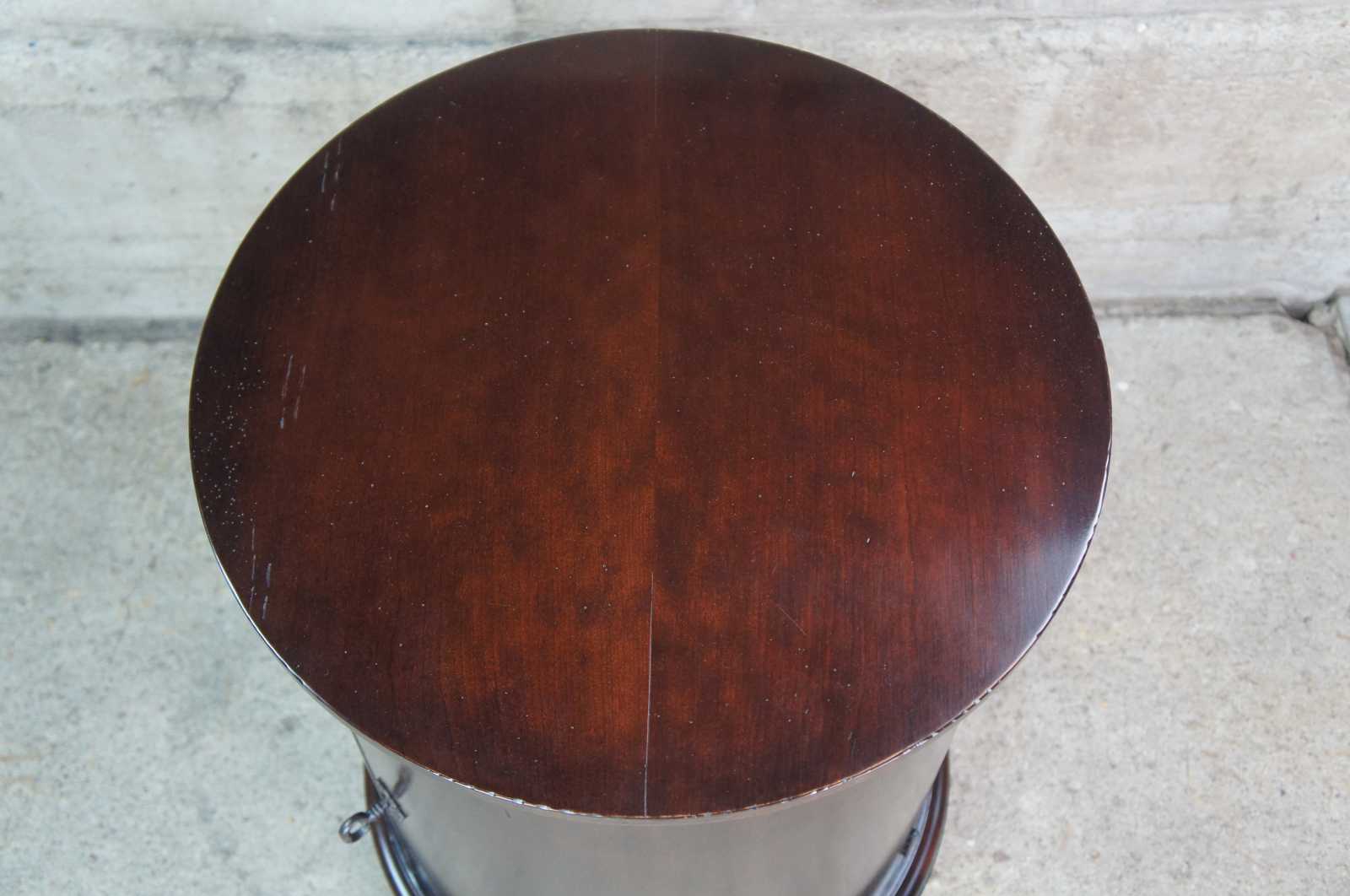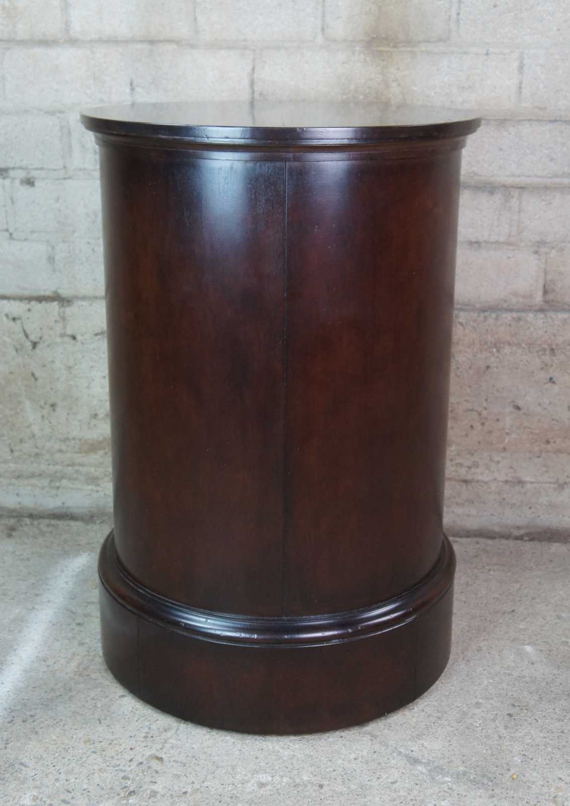 Two Henredon for Ralph Lauren drum table or somno cabinets. Made of mahogany featuring round form with lower cabinet.