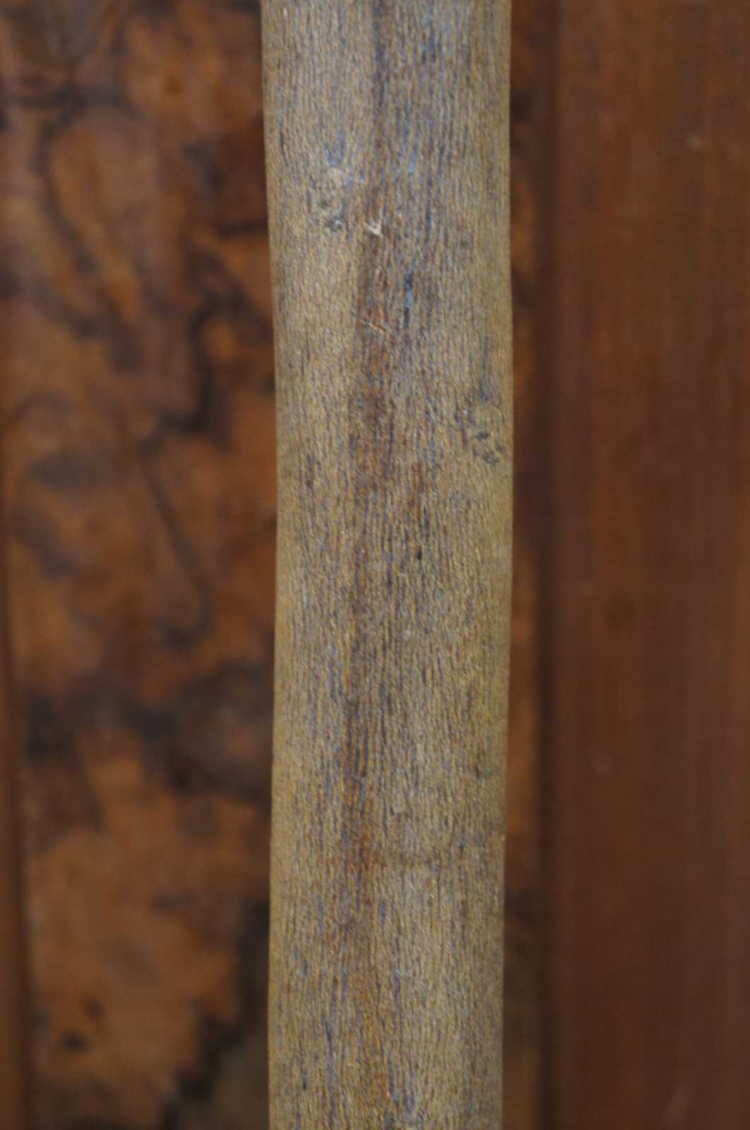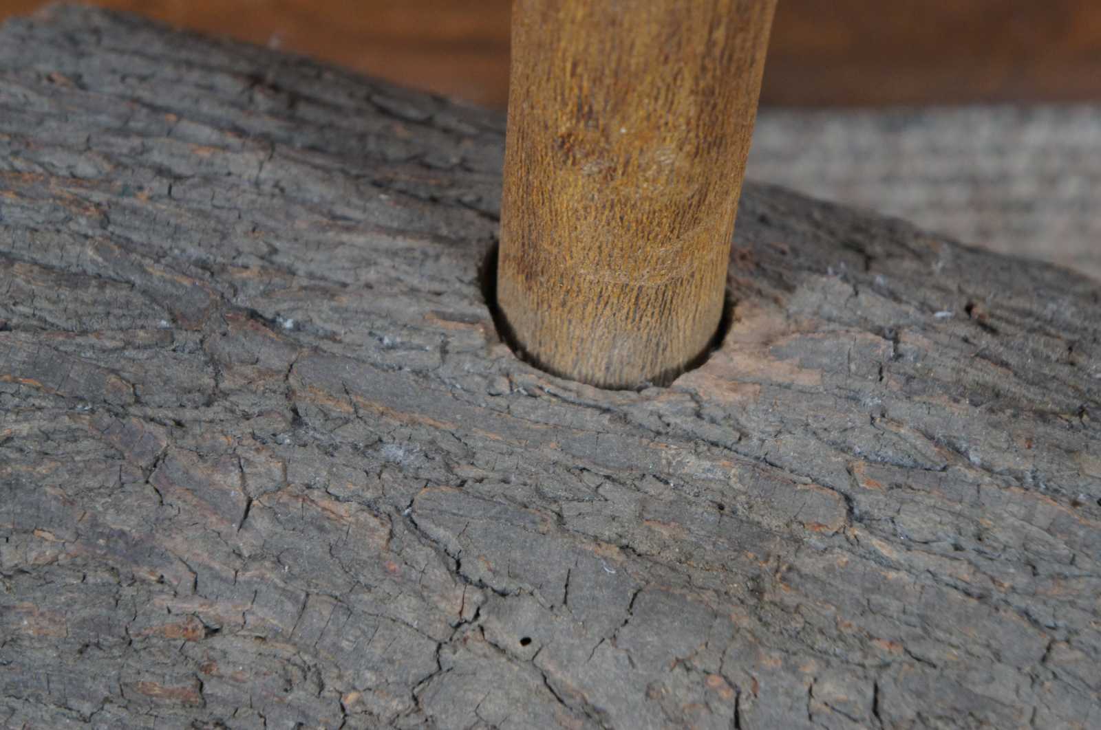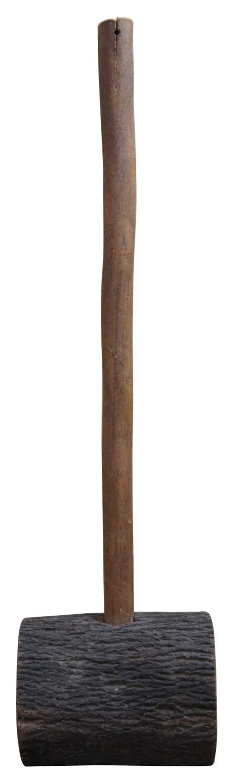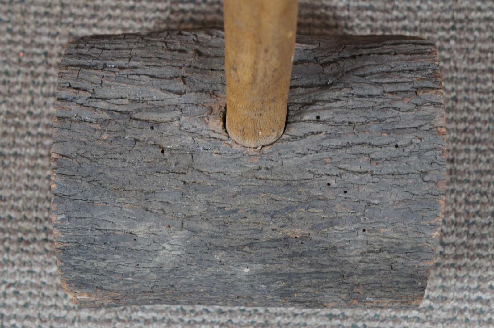 Vintage rustic wooden circus style mallet made of a section of live edge tree trunk.