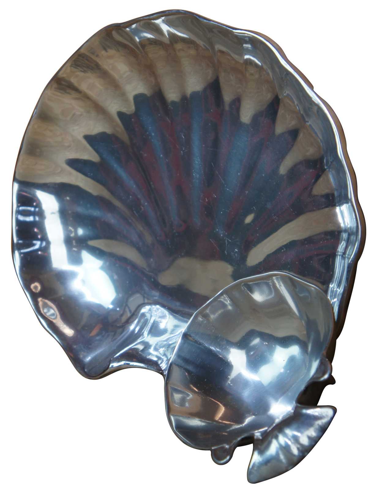 Vintage Wilton Armetale pewter hors d'oeuvres / chip and dip bowl dish set featuring clam shell motif.