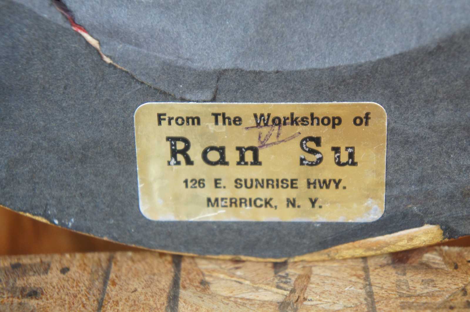 20th century still life oil painting on board.. Features a bouquet of flowers in an oval frame with raised flowers. Marked Worshop of Ran Su in Merrick NY
