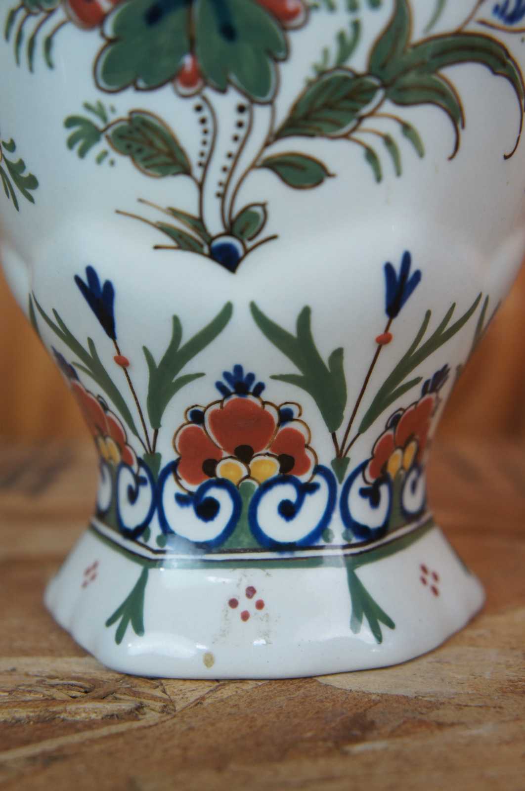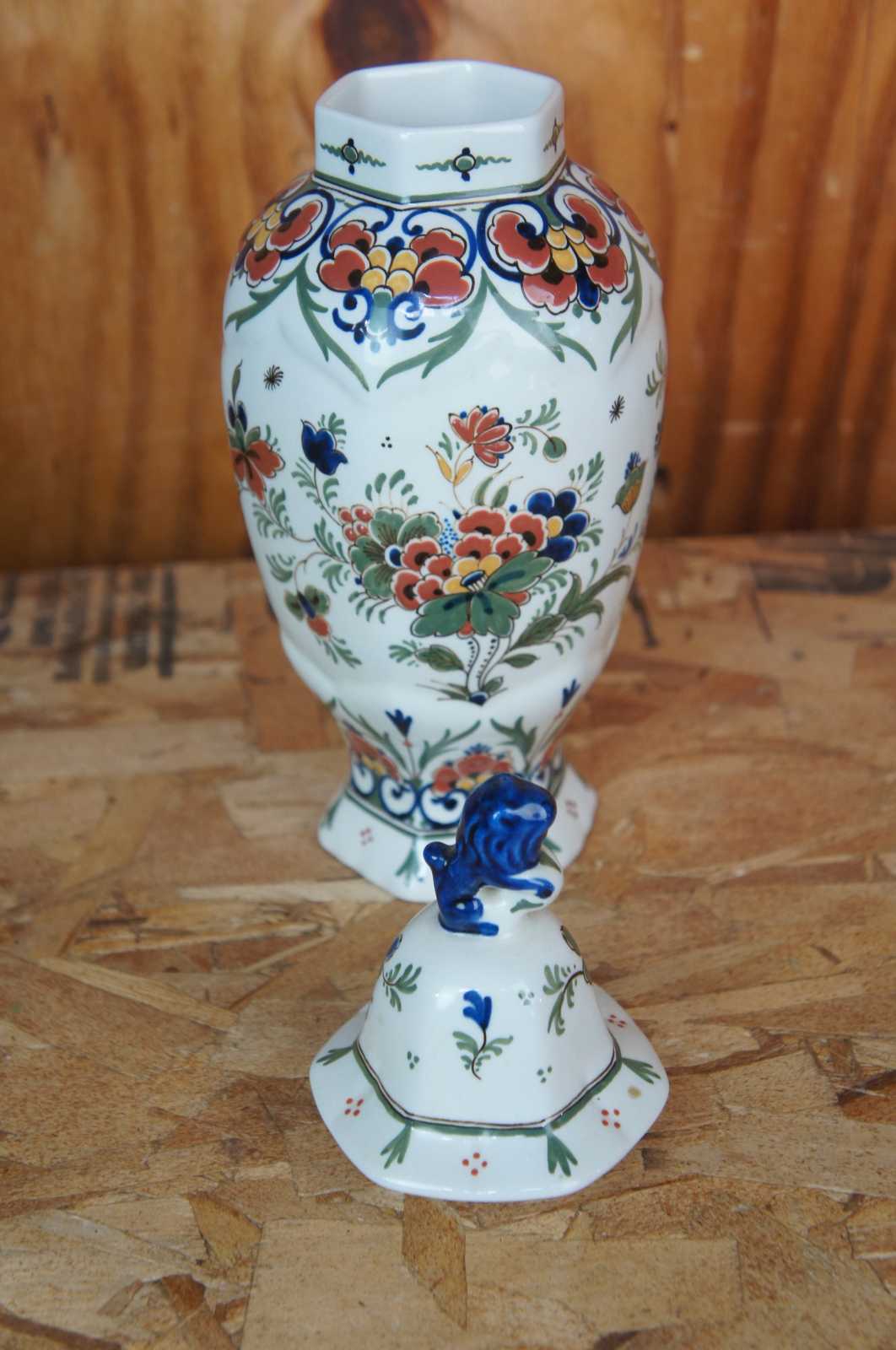 Royal Delft De Porceleyne Fles lidded jar. Hand painted with flowers and figural fu dog lid. Marked along underside.
