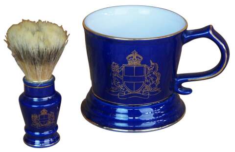 Royal London Shaving Mug & Brush. Cobalt blue with gold trim
