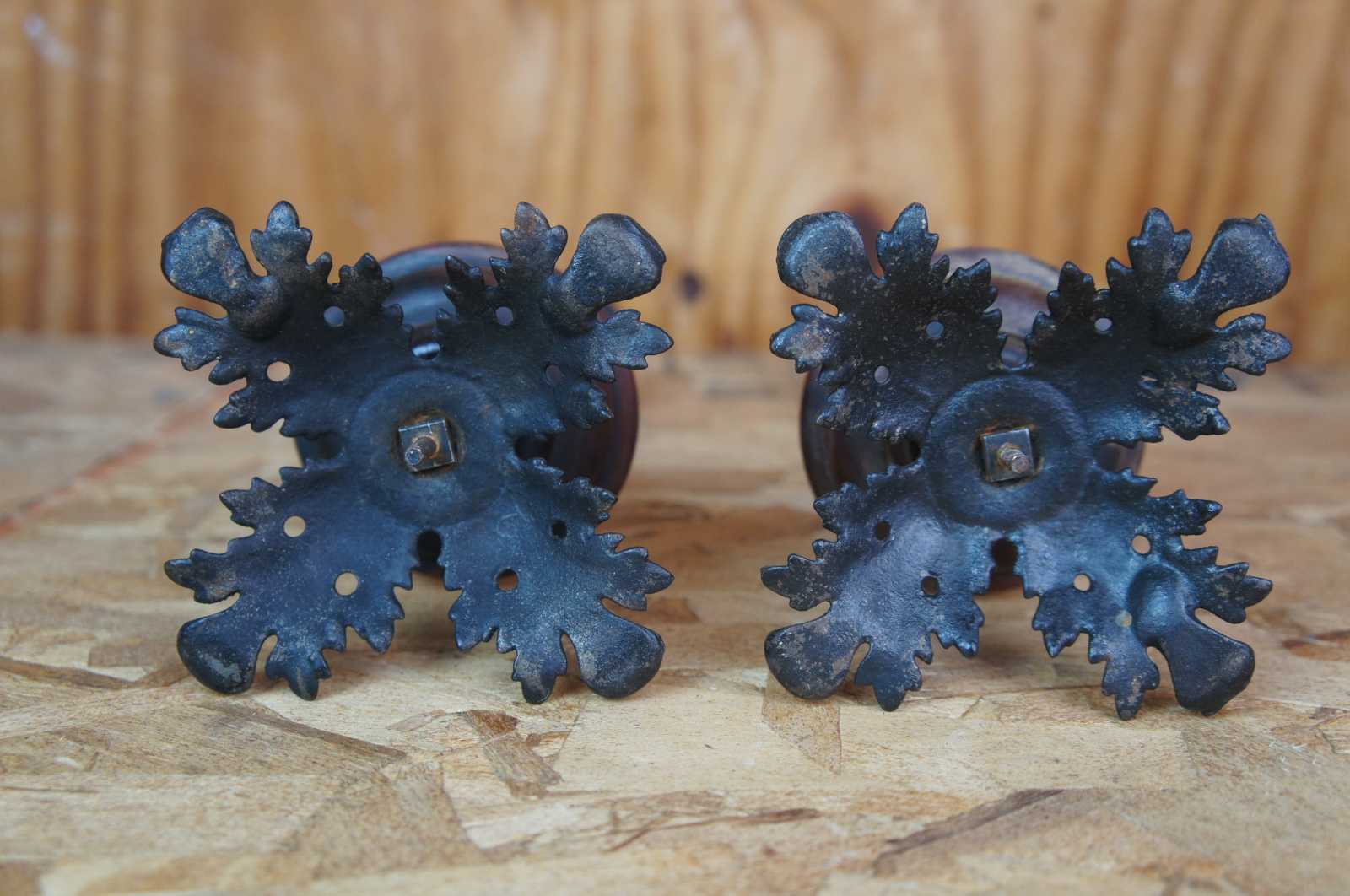 Pair of Iron & Wood Candlesticks