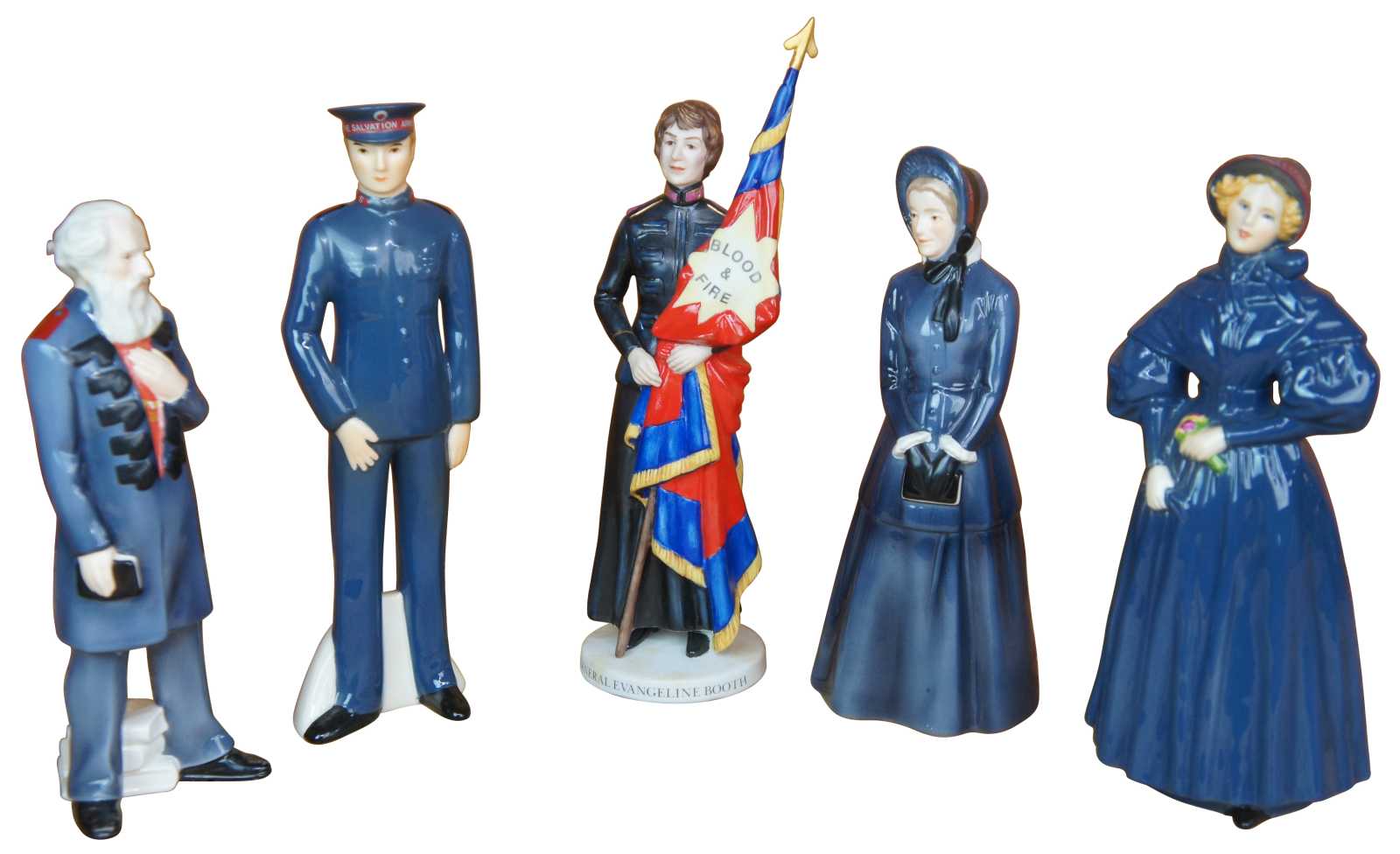 4 goebel and 1 limited Edition Salvation Army porcelain officer and army figurines. Features William & Catherine Booth