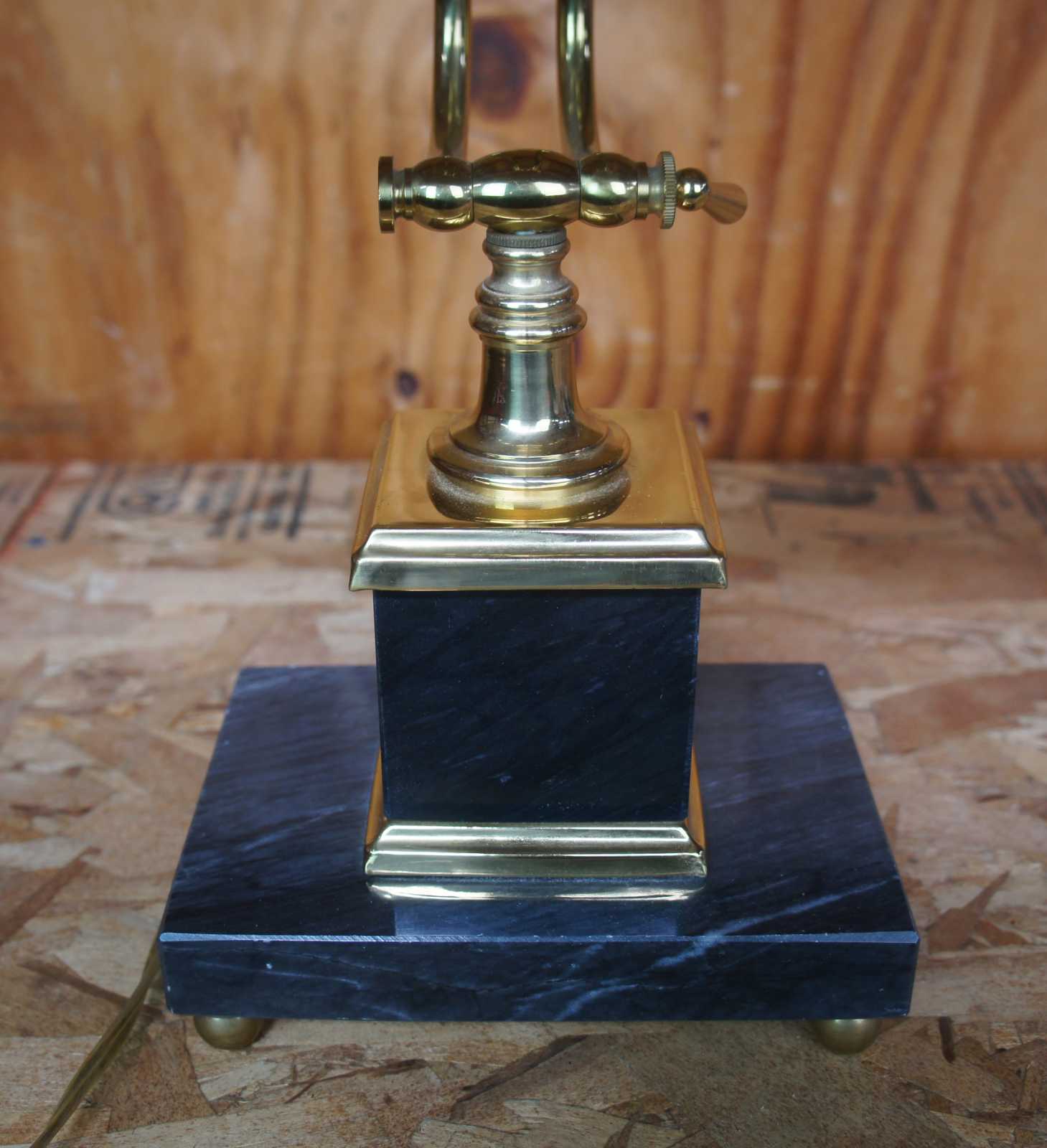 A beautiful adjustable brass paino or desk lamp. Features a marble base.