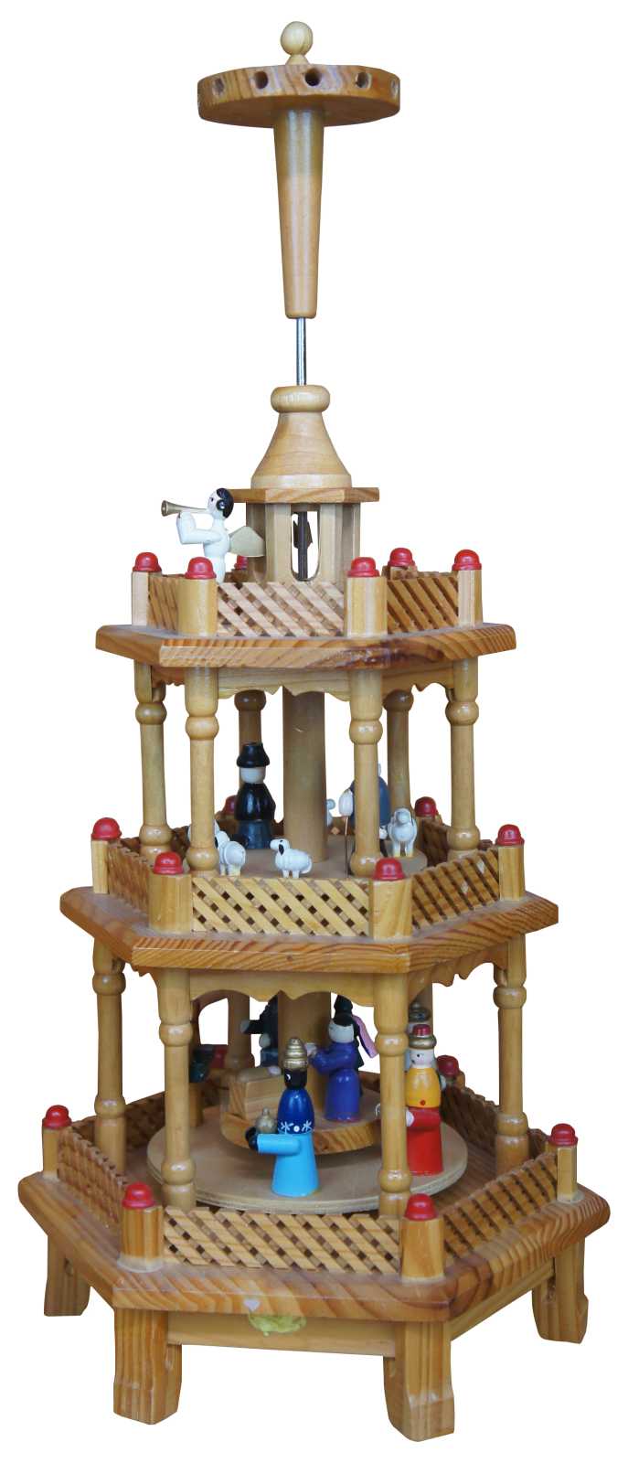 Vintage Pine Erzgebirge German Christmas Nativity 3 Tier Carousel Pyramid 19"
