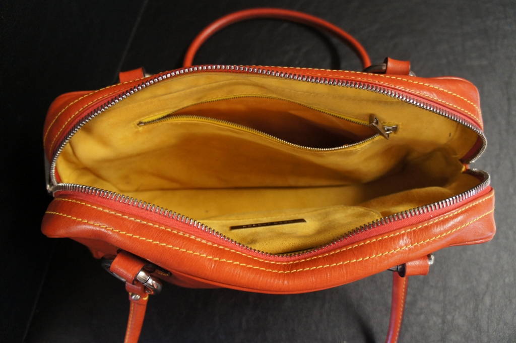What a unique Marc Jacobs bag! This rare vintage three pocket bag has a great look and is in very good condition for its age. It is hard to describe this color...we call it a burgundy salmon or burnt orange. It would look excellent around town on your shoulder. Come in today and check it out!