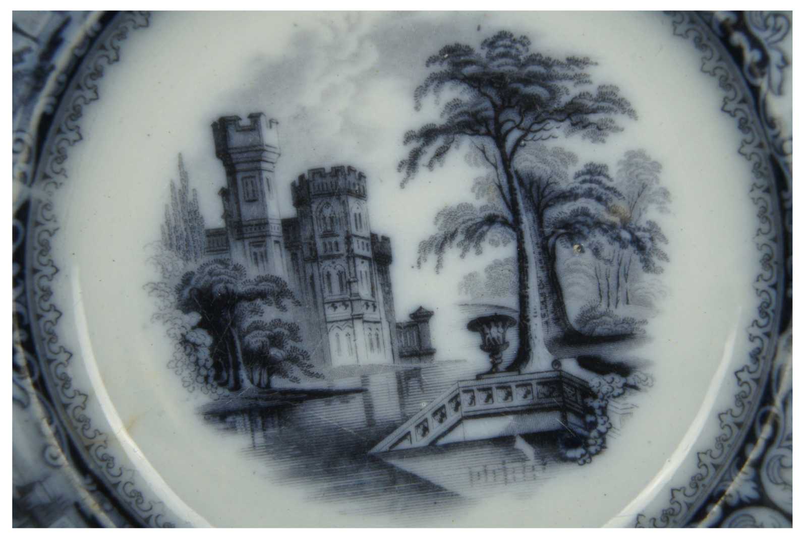 1 Edward Walley Foliage flow black transferware plate, Circa 1848-1858