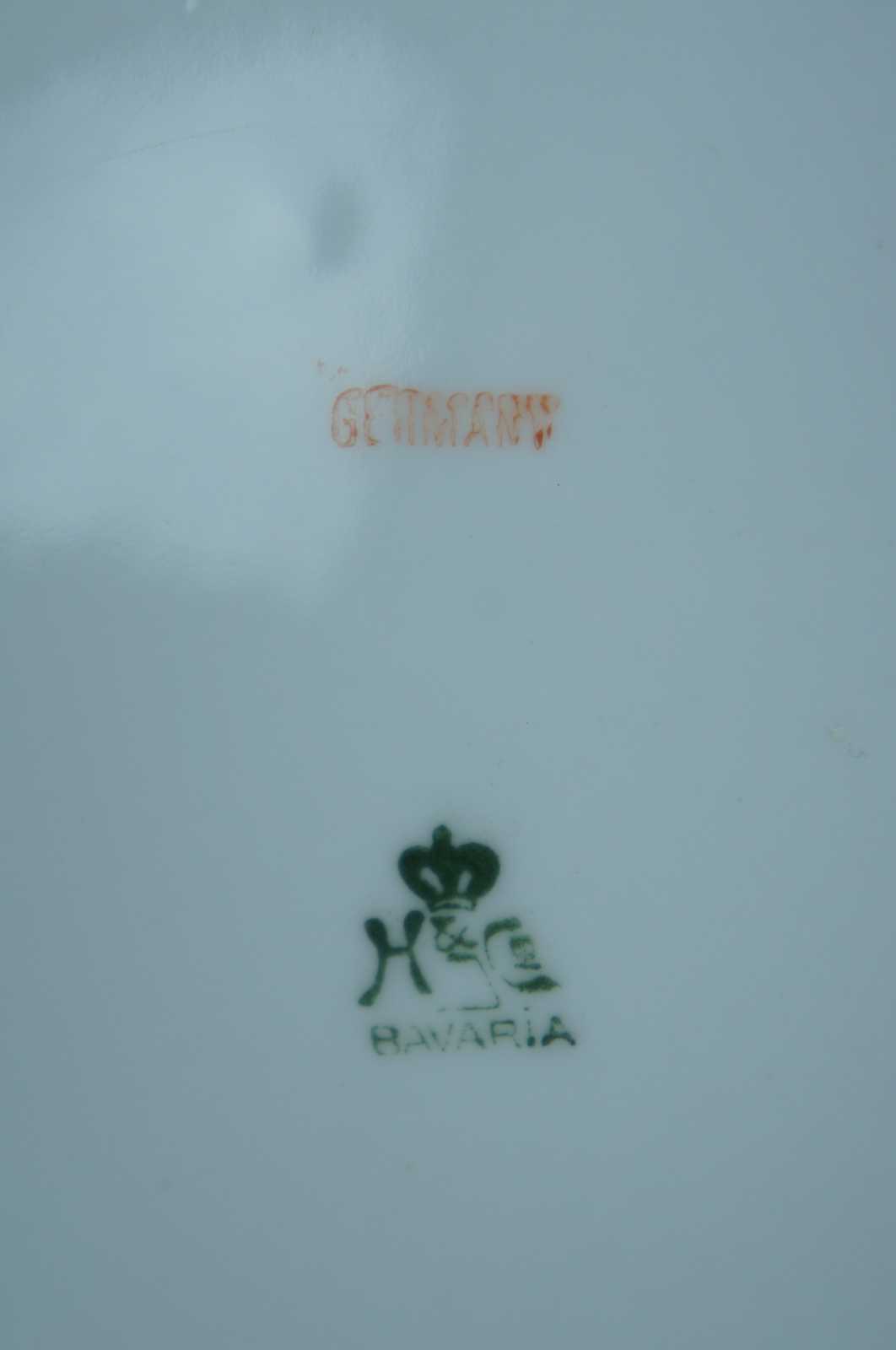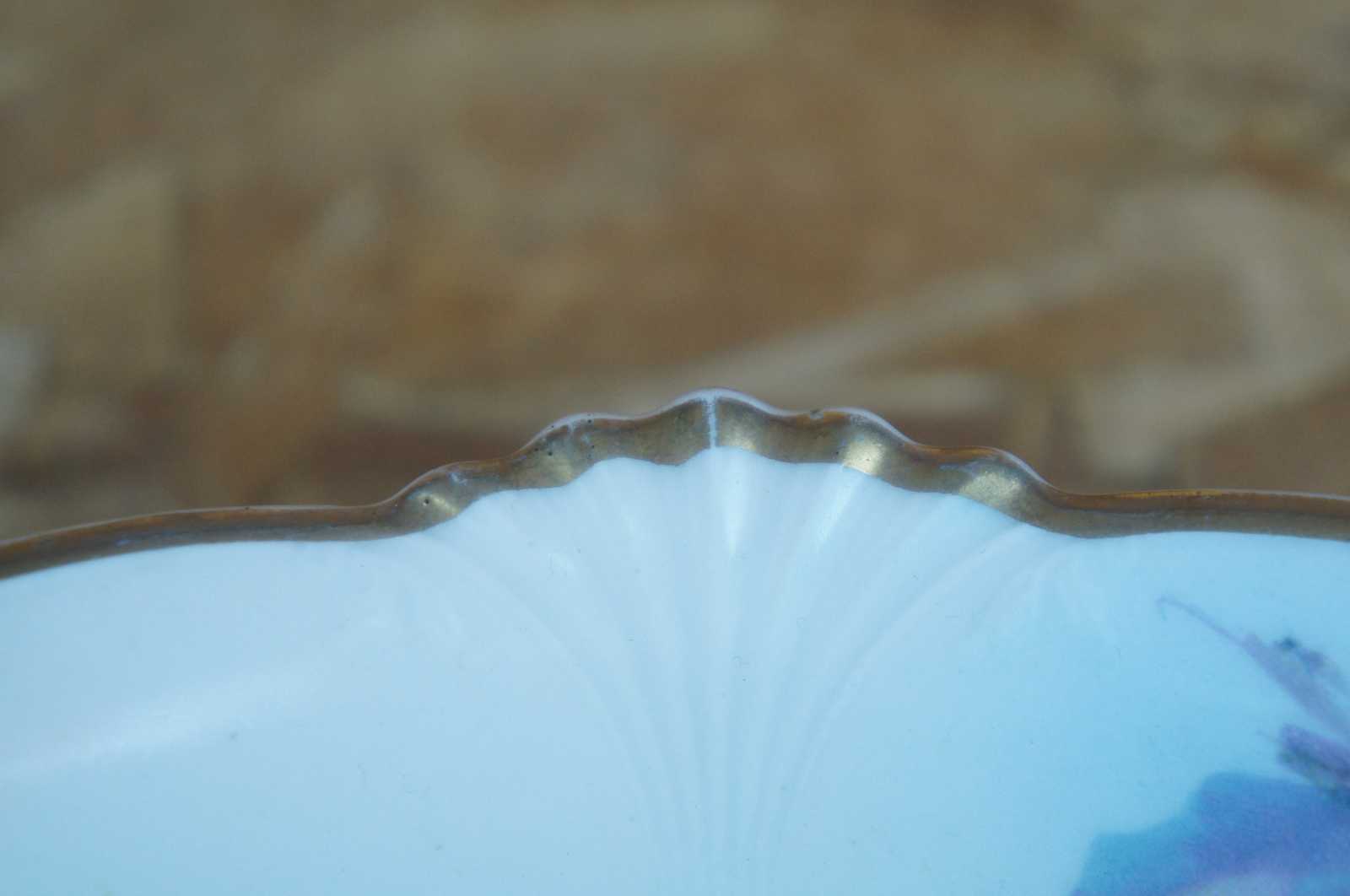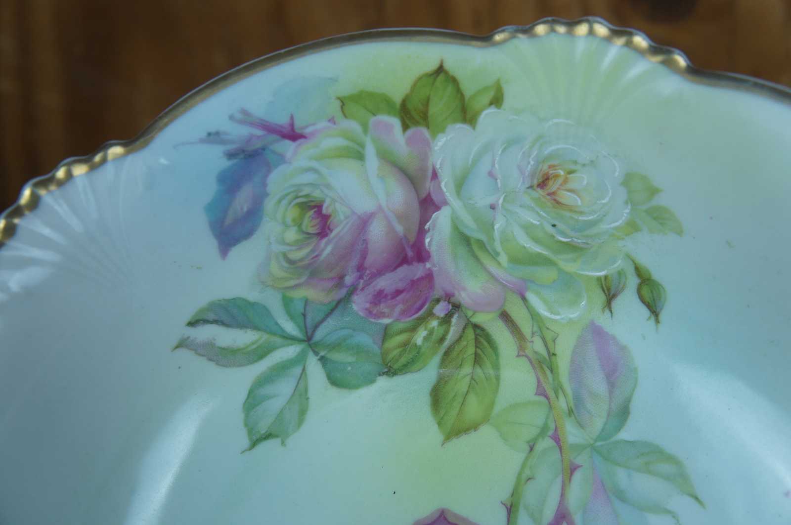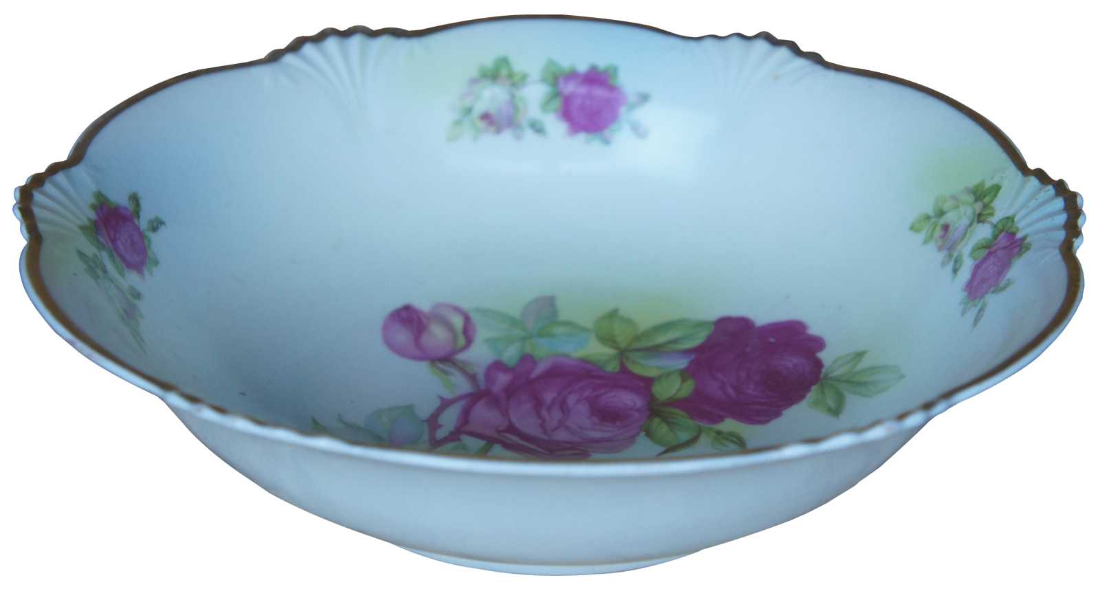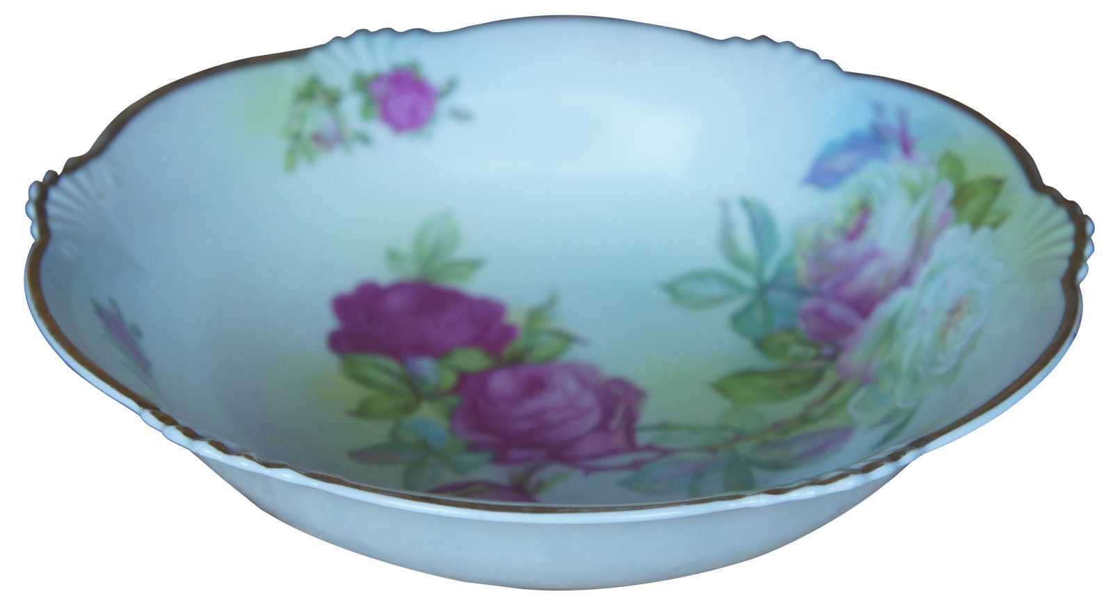 Antique floral bowl featuring hand painted roses and scalloped gold edge. Marked Germany, Bavaria with crown.