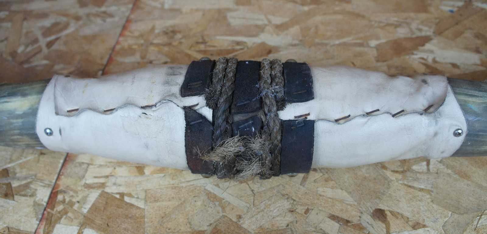 Fair condition, wear and distressing, some loose joining and peeling to horns.