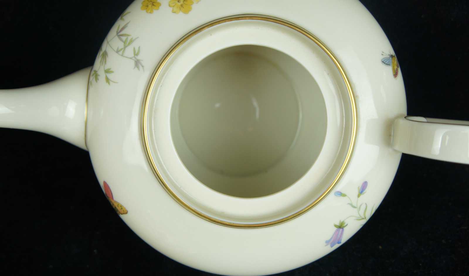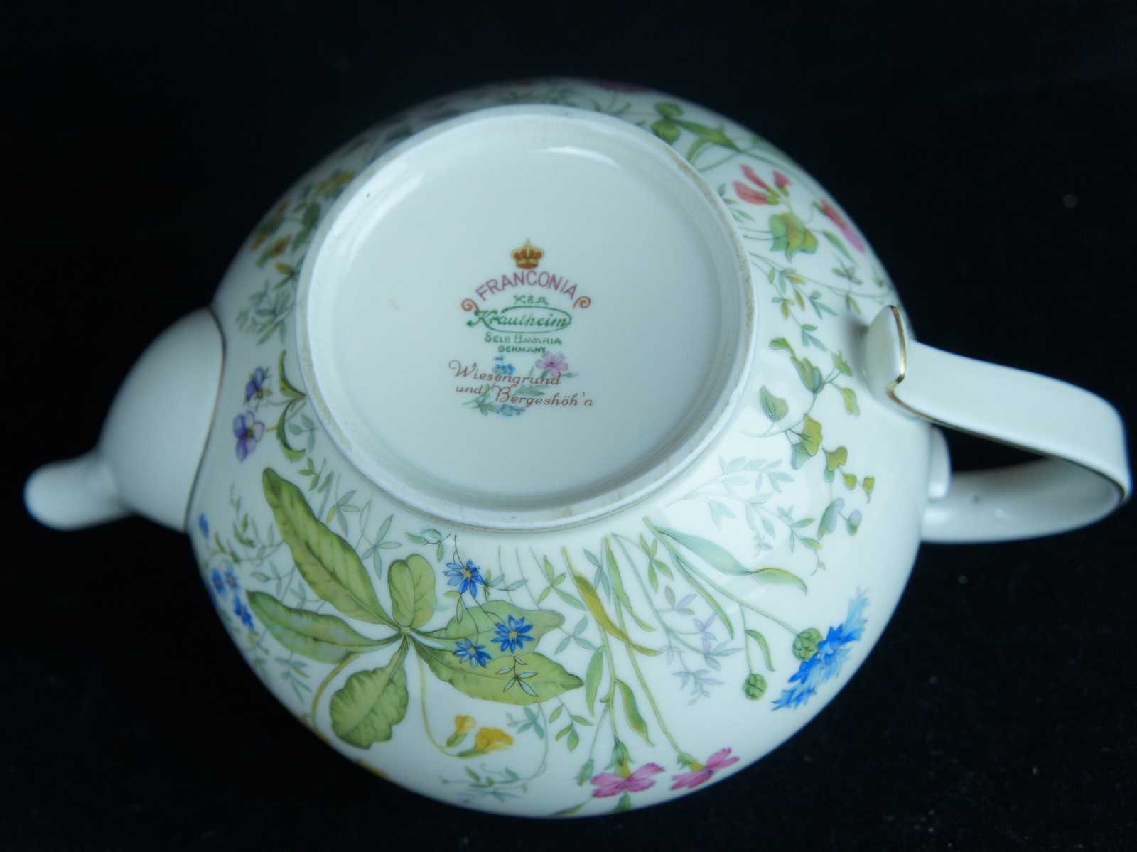 Vintage Franconia porcelain meadow flowers and butterfly teapot. Made in Germany, marked Franconia K & A Krautheim Selb Bavaria Germany Wiesengrund und Bergeshohn.